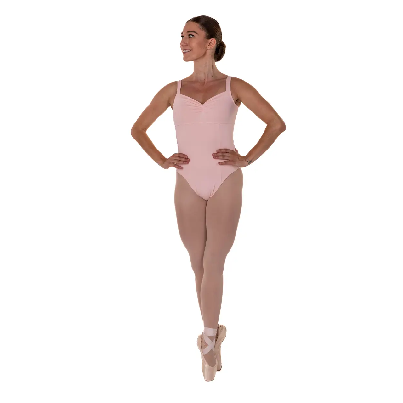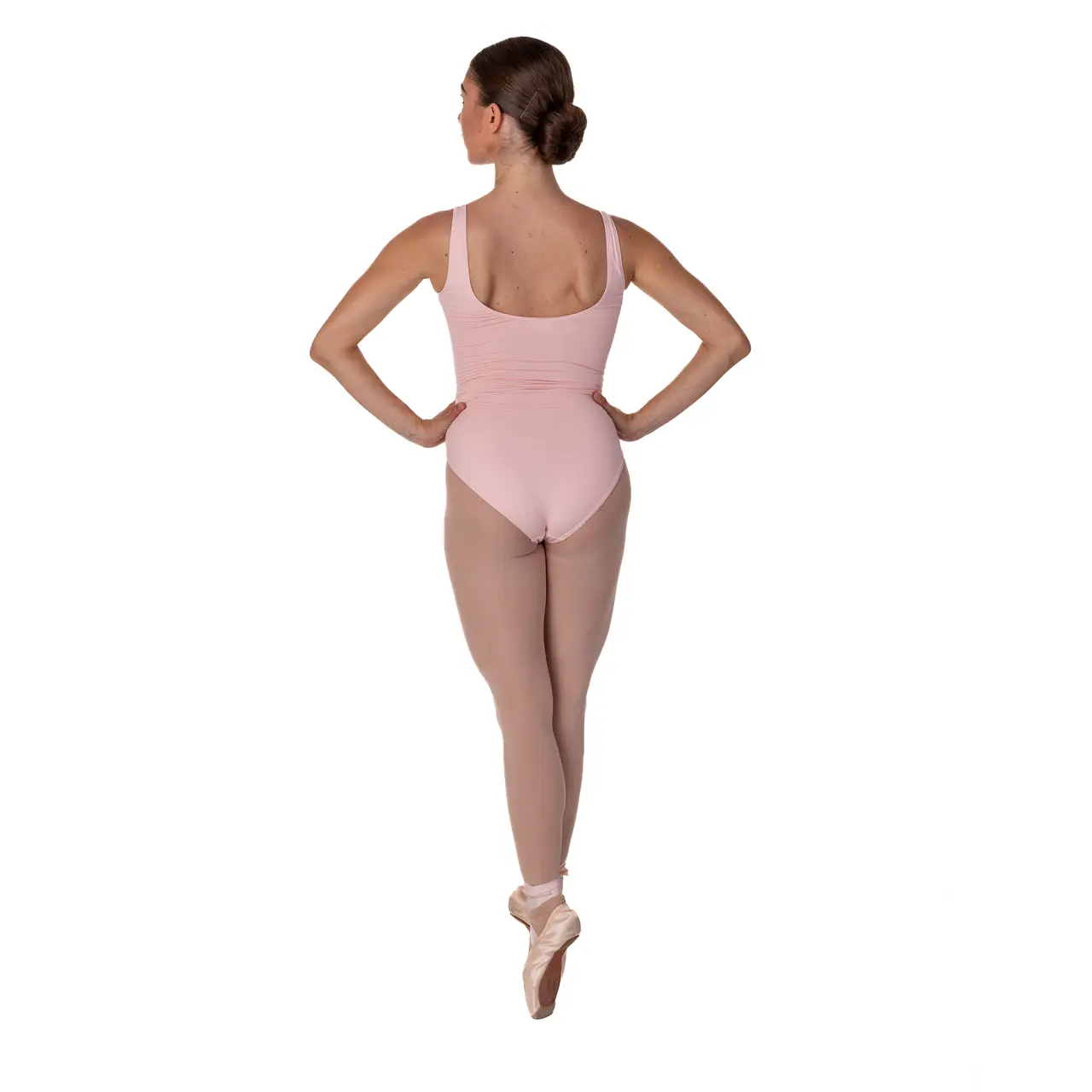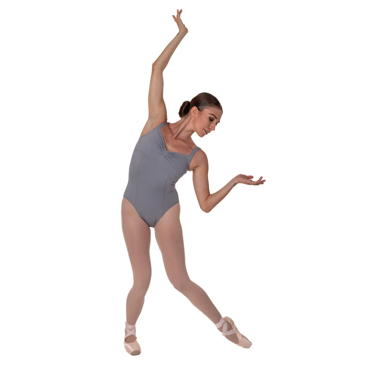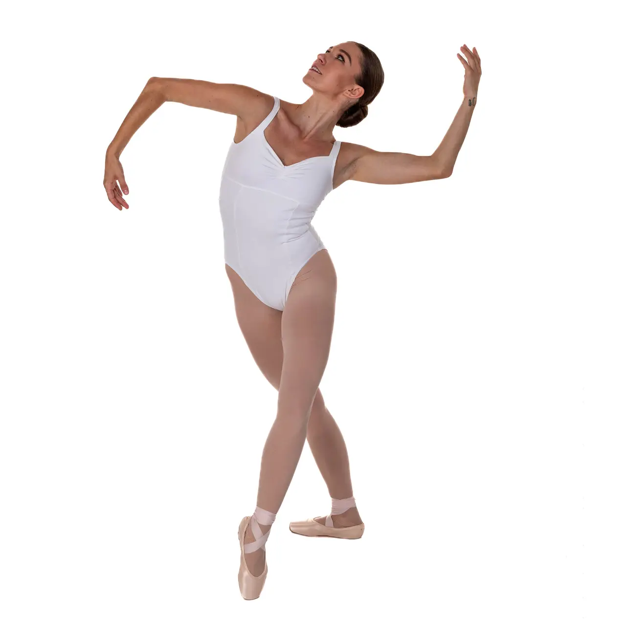 Das Bloch Ava-Trikot mit breiten Trägern vereint Praktikabilität und zarte Eleganz. Sein raffinierter Schnitt mit Teilungsnaht unter der Brust und sanfter Raffung betont das Dekolleté wunderschön, während der bogenförmige Rückenausschnitt dem Modell einen romantischen Touch verleiht.