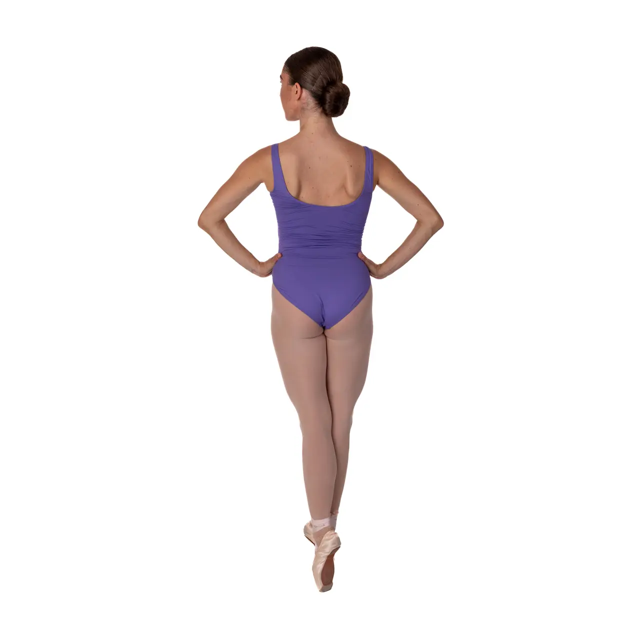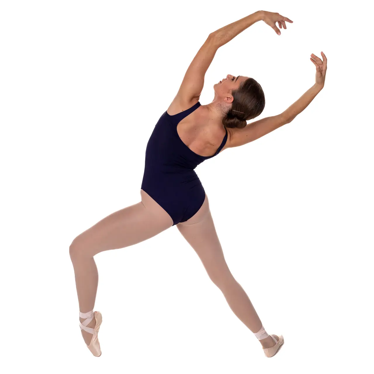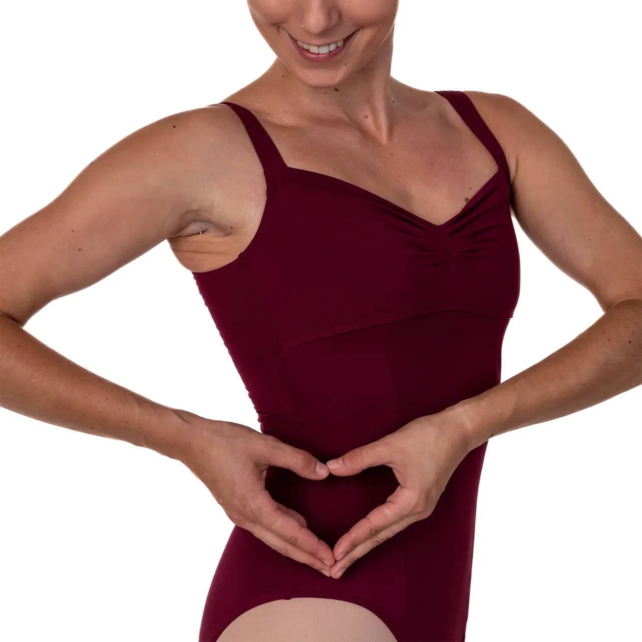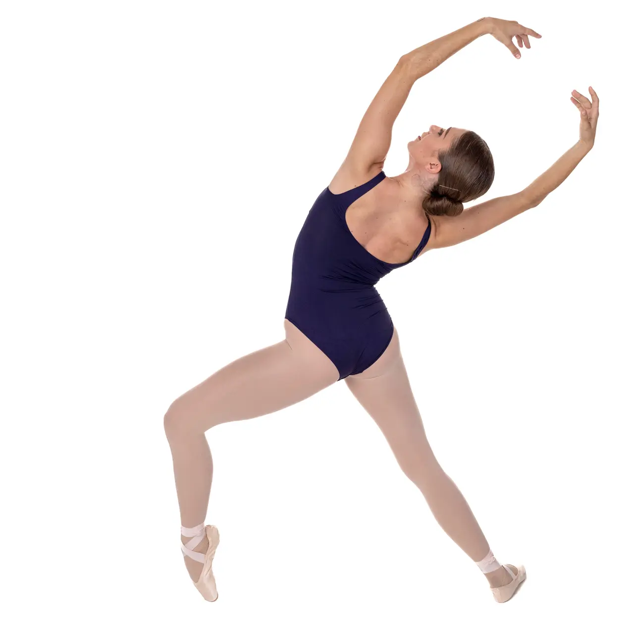 Das Bloch Ava-Trikot mit breiten Trägern vereint Praktikabilität und zarte Eleganz. Sein raffinierter Schnitt mit Teilungsnaht unter der Brust und sanfter Raffung betont das Dekolleté wunderschön, während der bogenförmige Rückenausschnitt dem Modell einen romantischen Touch verleiht.