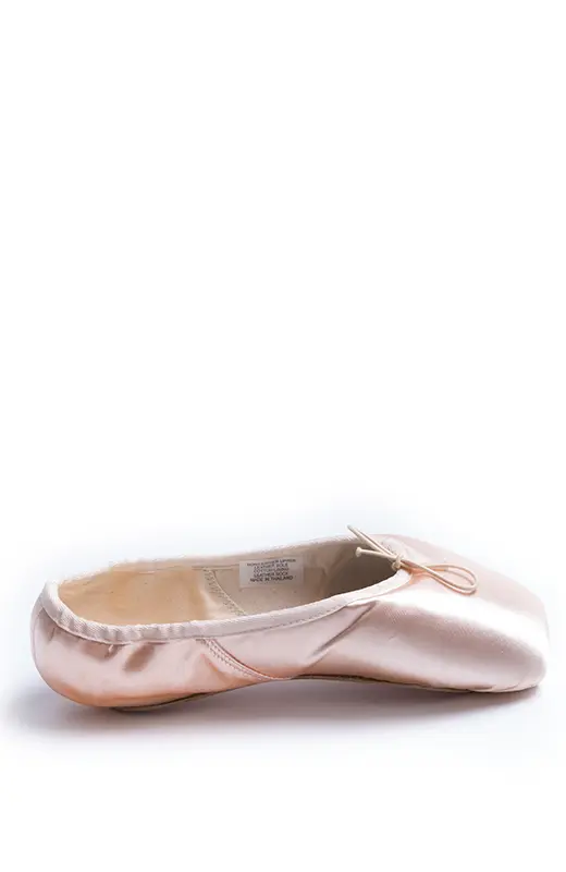 Bloch Balance European sind Ballettspitzenschuhe, die die Linie des Fußes wirklich sehr schön halten. Die Box hat die Form des Buchstabens U. Innen ist sie etwas schmaler, um ausreichend Halt an den Zehen zu bieten, aber die Standfläche der Spitze ist breiter. Die Ferse ist verjüngt, sodass beim Stehen auf Spitze kein überschüssiges Material absteht. An den Seiten ist die Spitze ebenfalls verjüngt und niedriger. Die Brandsohle ist durchgehend. Bänder werden separat verkauft.