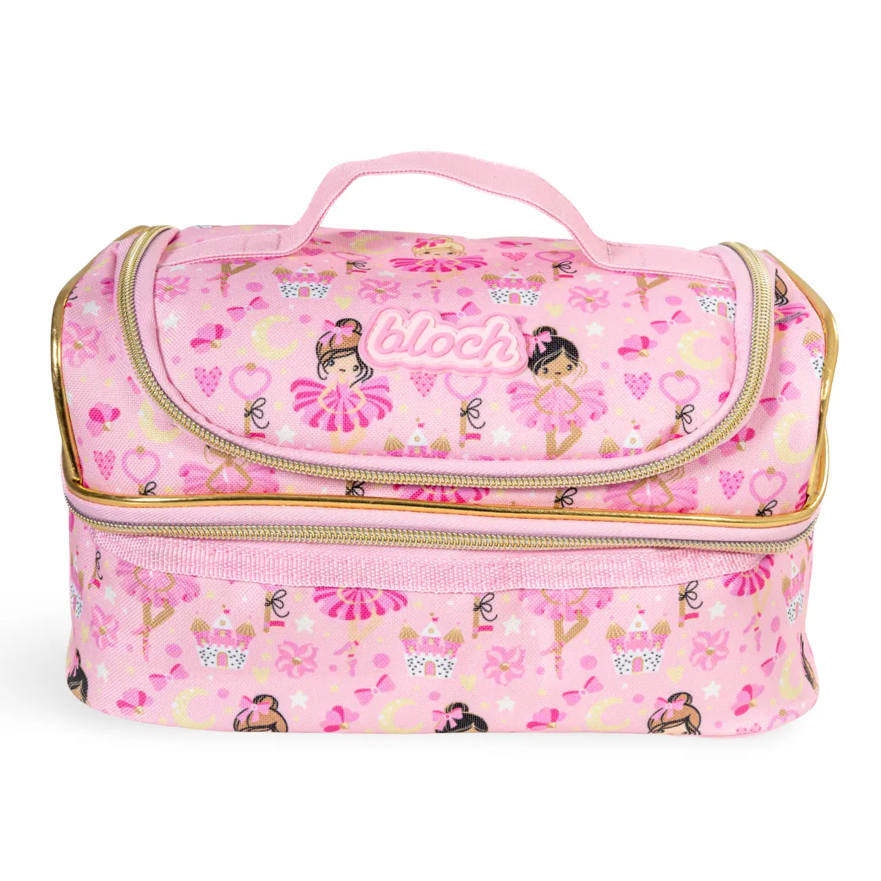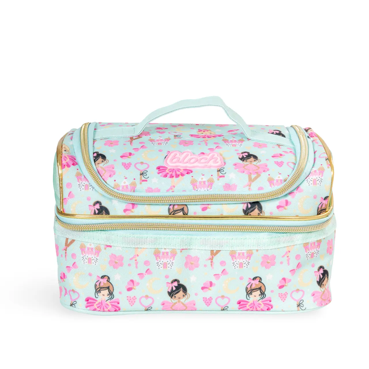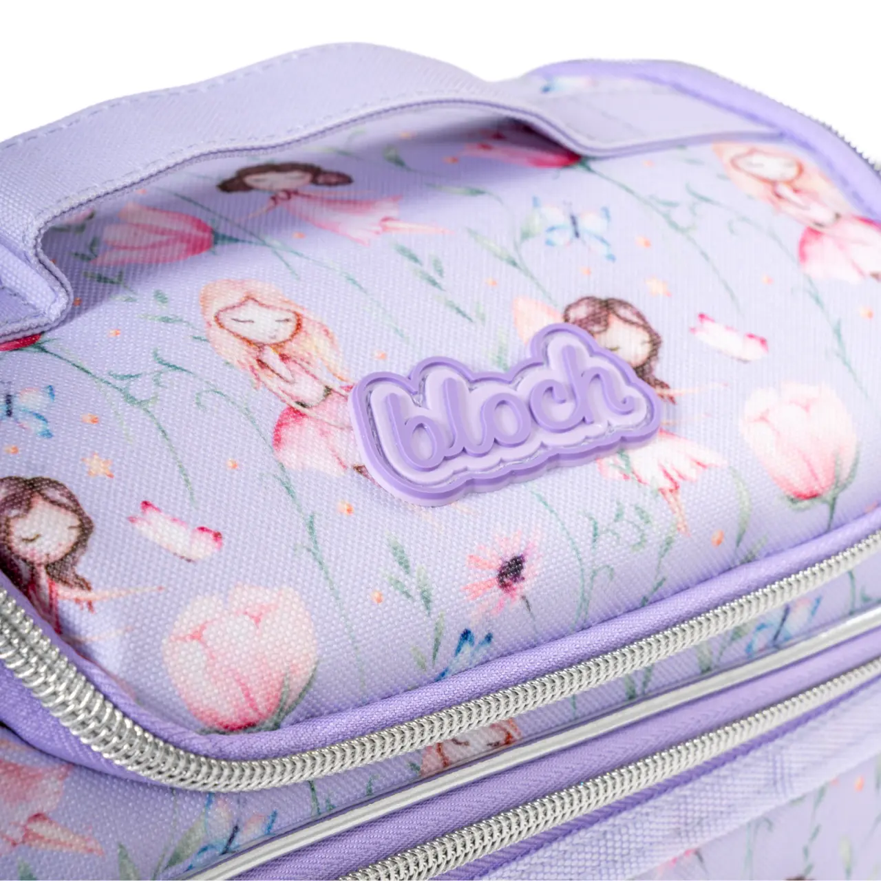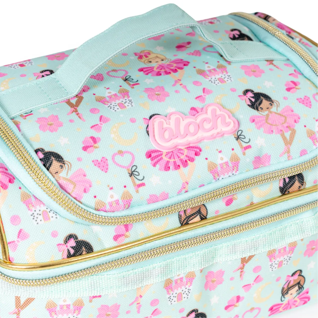 Zauberhafte Tasche mit Motiv kleiner Ballerinas und Blümchen, an den Seiten mit Glitzer belebt ist vor allem zur Aufbewahrung von Snacks für kleine Tänzerinnen bestimmt.