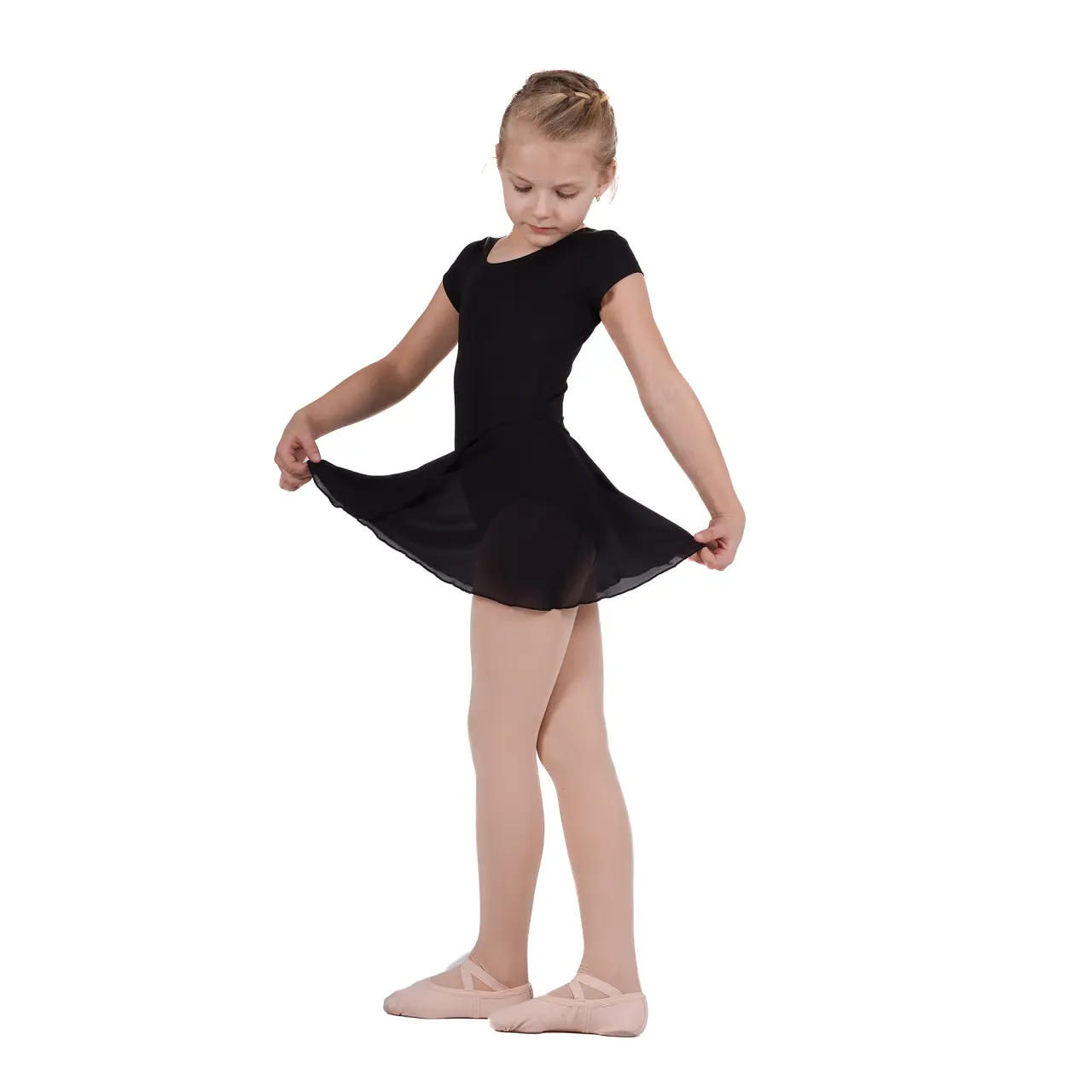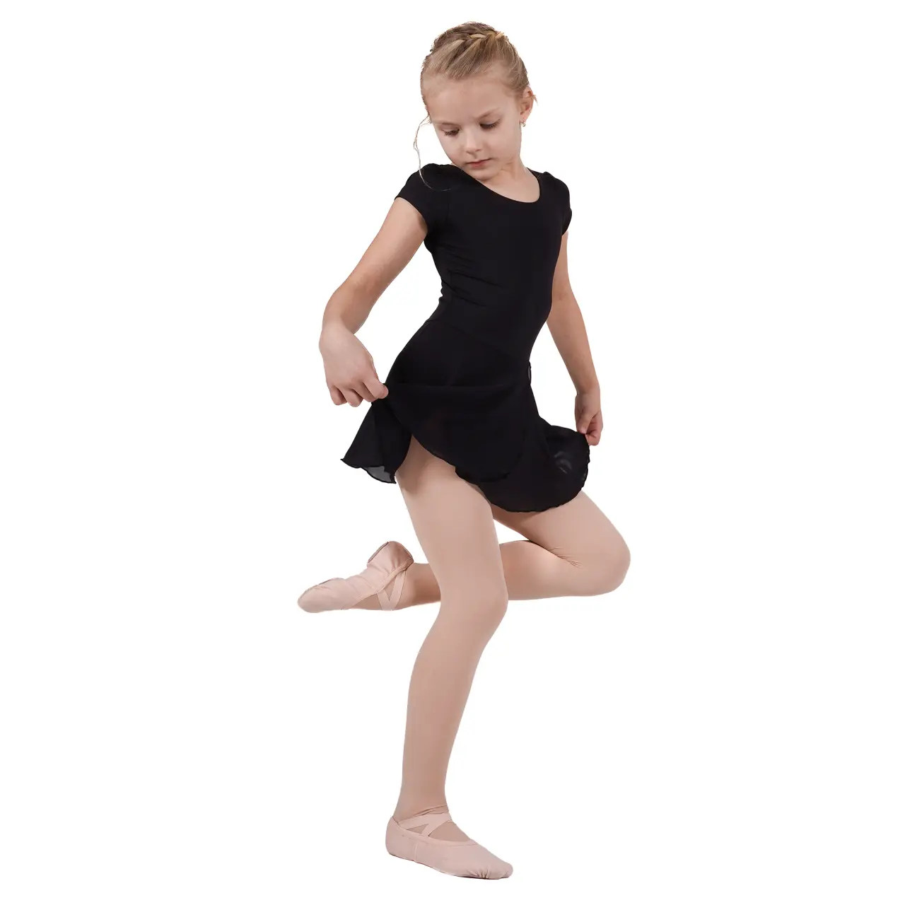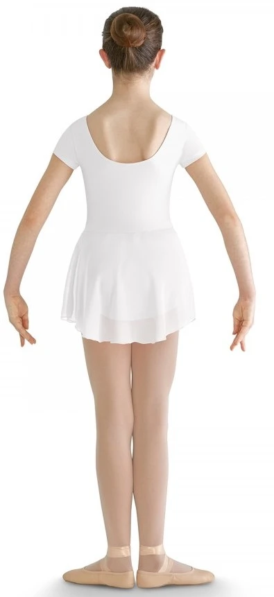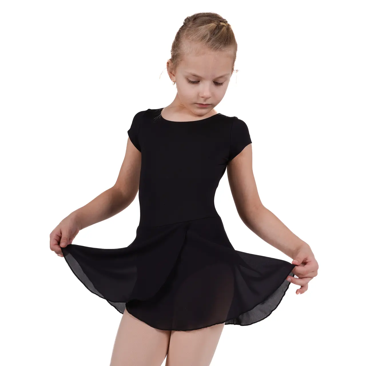 Elegantes und bequemes Balletttrikot mit kurzem Ärmel und einem zarten Chiffonröckchen im gleichen Farbton. Dieses Modell ist die ideale Wahl für alle kleinen Tänzerinnen – ob Anfängerinnen oder Fortgeschrittene.