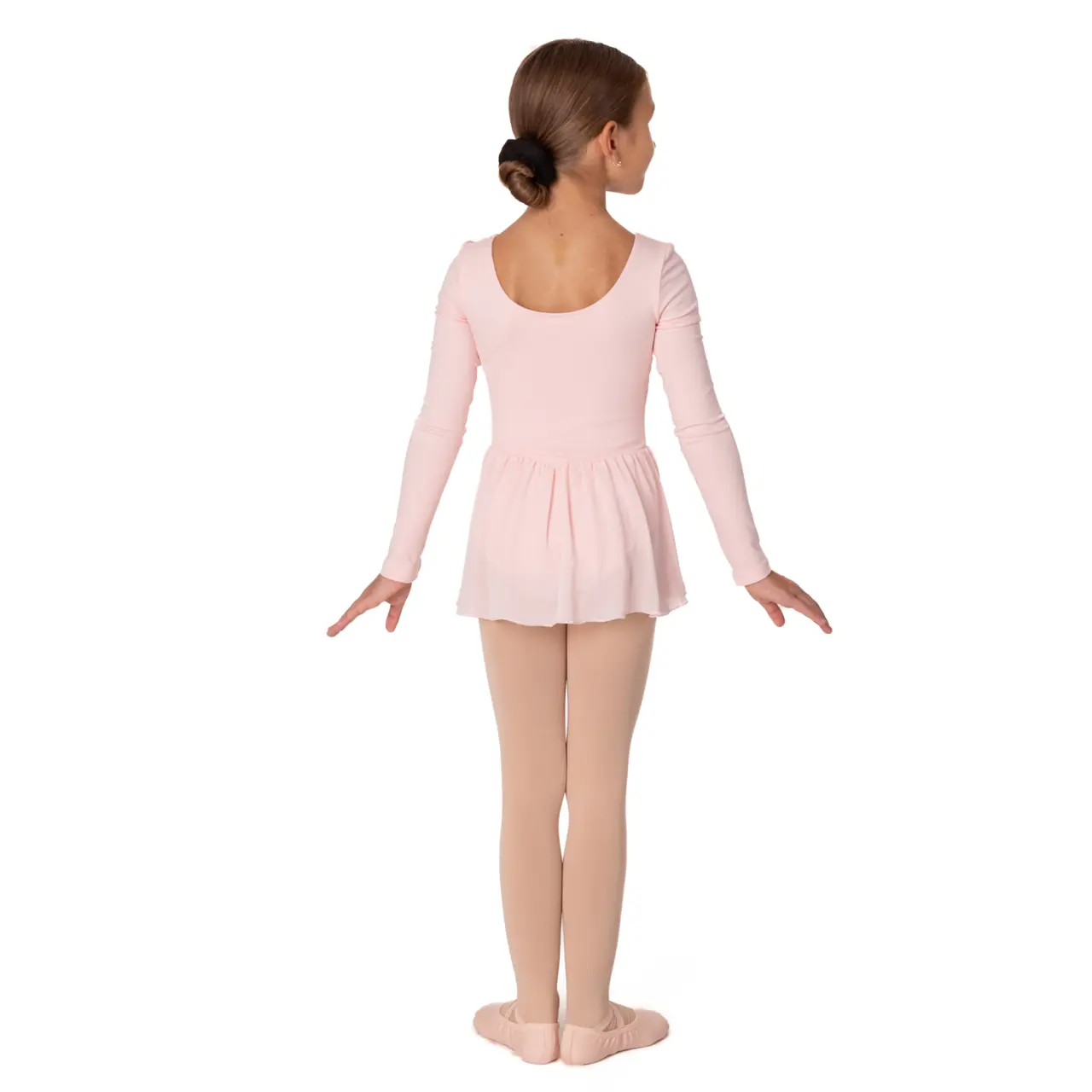 Das Kindertrikot Petal mit langen Ärmeln und einem entzückenden Röckchen ist die perfekte Kombination aus Qualität, Komfort und zartem Design. Hergestellt aus fester Baumwolle mit Futter im Vorderteil und einem feinen Georgette-Röckchen – ideal für Training, Auftritte und auch für den Alltag.