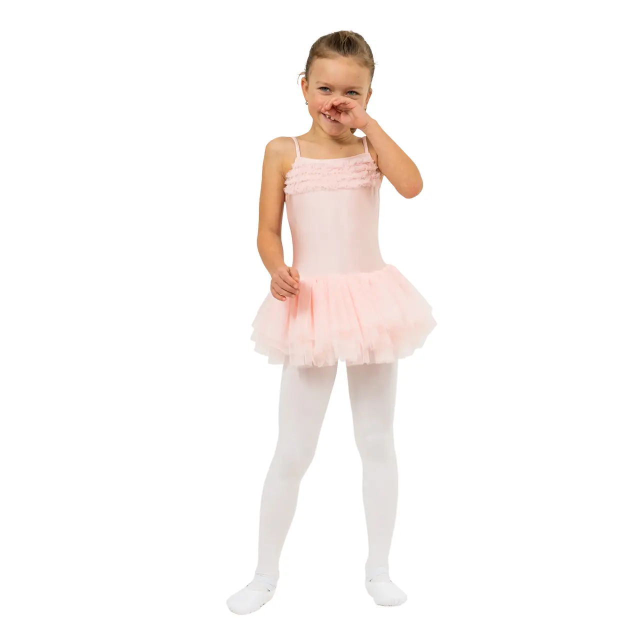 Zum Kleid gehört ein Tutu-Röckchen aus drei Lagen 100 % Chiffon, das leicht und luftig wirkt – genau so, wie es sich für eine echte Ballerina gehört.
