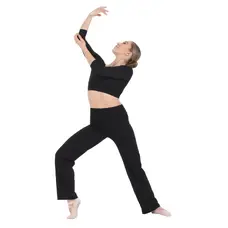 Diese elegante Trainingshose ist ideal nicht nur für Tänzerinnen, sondern auch für Pädagoginnen. Am Bund hat sie einen stilvollen V-Schnitt, der die Figur angenehm formt. Dank des geraden Schnitts ist die Hose im unteren Bereich weiter, was freie Bewegungen und Komfort während des Trainings oder im Tanzunterricht ermöglicht.