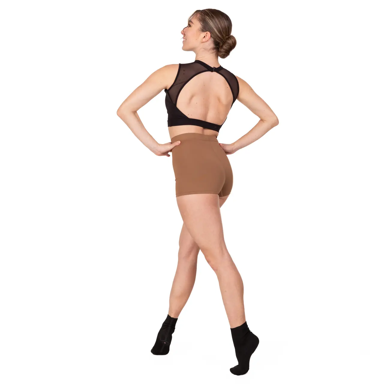 Ärmelloses Top ideal für jeden Tanz oder sogar für den Alltag, wenn Sie großartig aussehen und sich fantastisch fühlen möchten. Vorne, unter der Brust gefüttert, hat es im Brustbereich (in Richtung Hals) einen Teil aus atmungsaktivem Mesh. Das verleiht dem Top einen modernen und sophistizierten Look.