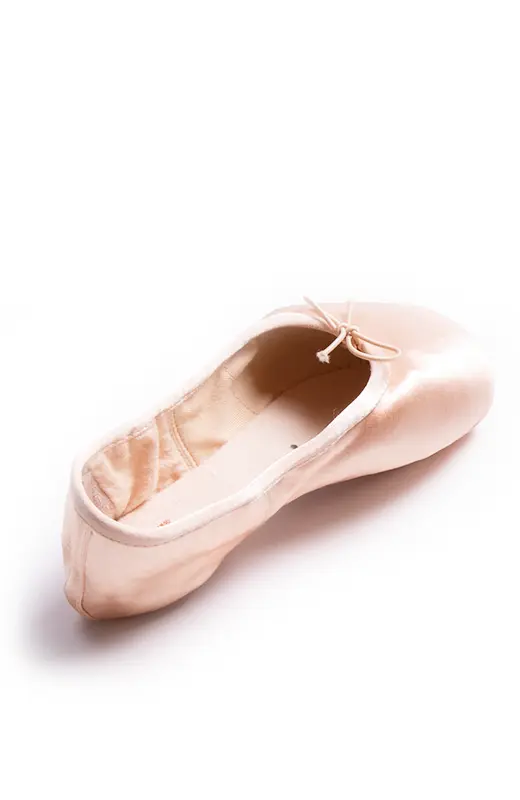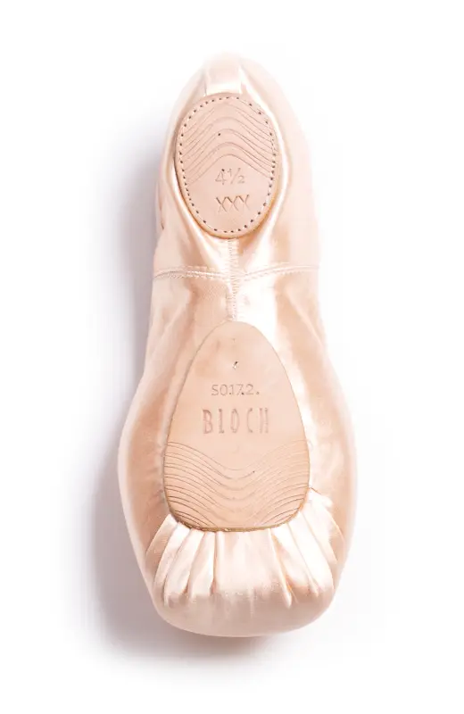 Nahtlose Stretch-Spitzenschuhe von hoher Qualität. Sie sind handgefertigt. Das Obermaterial besteht aus ausreichend strapazierfähigem Stretchmaterial. Die Box hat die Form des Buchstabens U. Die Spitze ist niedriger, die Plattform ist ca. 5 cm breit. Ermöglicht einen sicheren Übergang von der Halbschuhe-Position auf Pointe. Das Innere des Spitzenschuhs ist perfekt verarbeitet. Es ist mit Baumwollgewebe ausgekleidet. An den Stellen, an denen die Bänder angenäht werden, befindet sich Canvas, dadurch ist das Annähen einfacher und rutscht nicht. Innen an der Ferse ist weiches elastisches Leder eingenäht, das ein Abrutschen vom Fuß verhindert. In den elastischen Saum ist eine runde Gummischnur für das ideale Zusammenziehen eingenäht. Dieser Spitzenschuh liegt am Fuß wie eine Socke an. Die Brandsohle ist durchgehend. Von außen ist sie geteilt. Sie gehören zu den beliebten Modellen der Marke Bloch. Bänder werden separat verkauft. Sie sind für Fortgeschrittene geeignet, mit einem quadratischen Fußtyp.