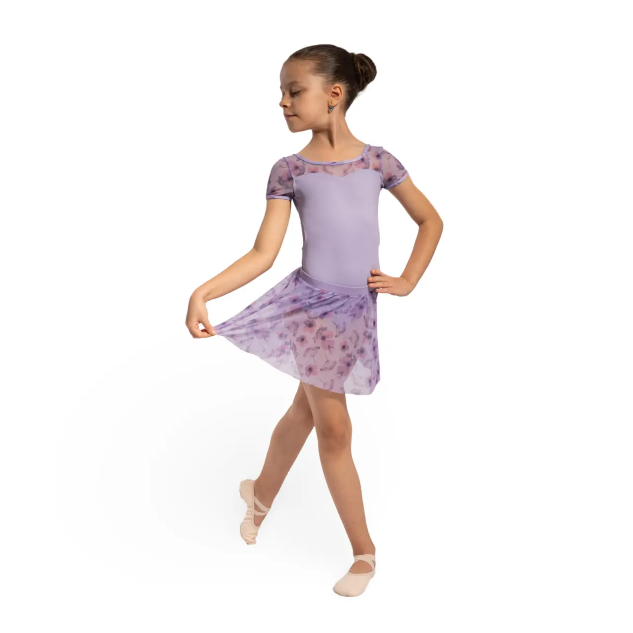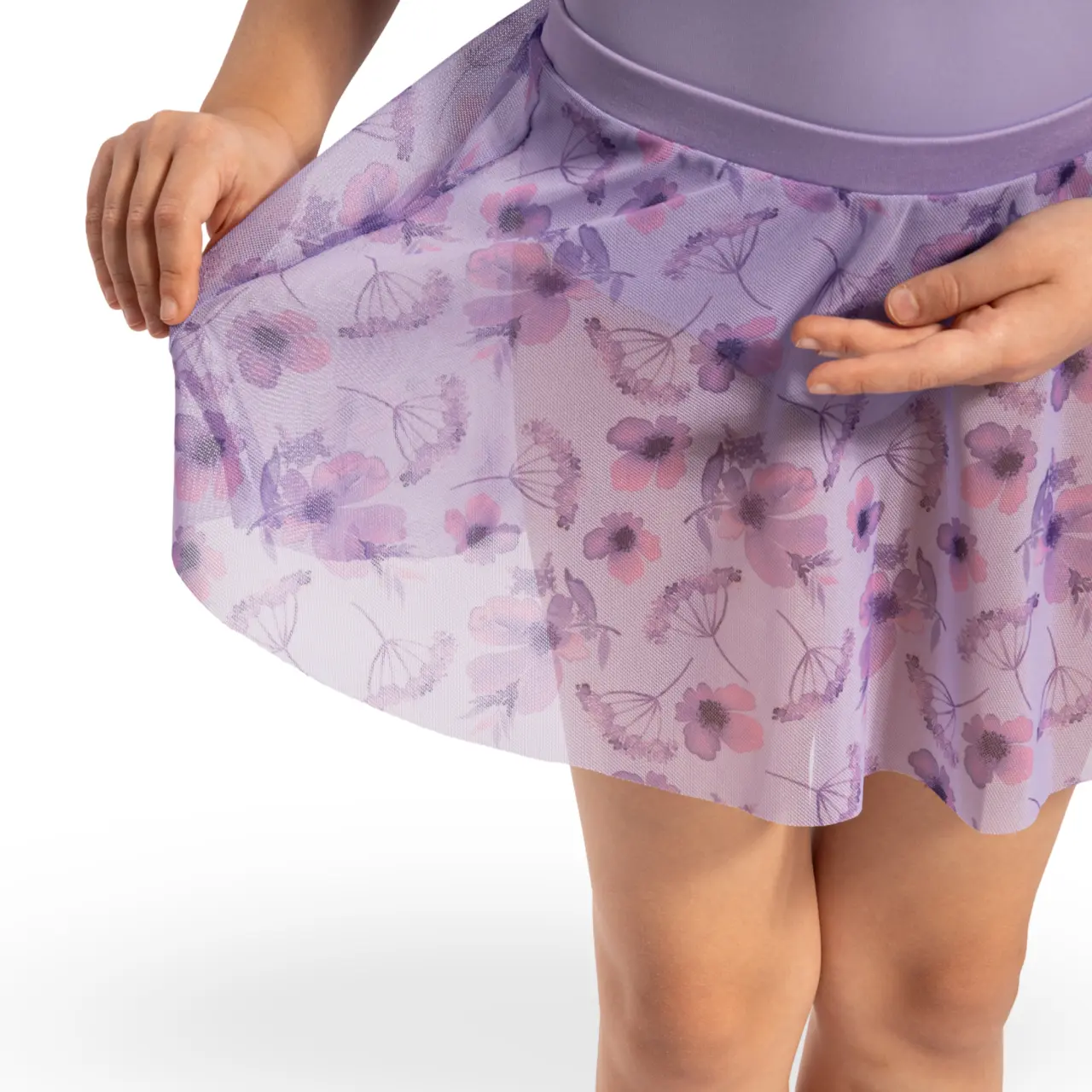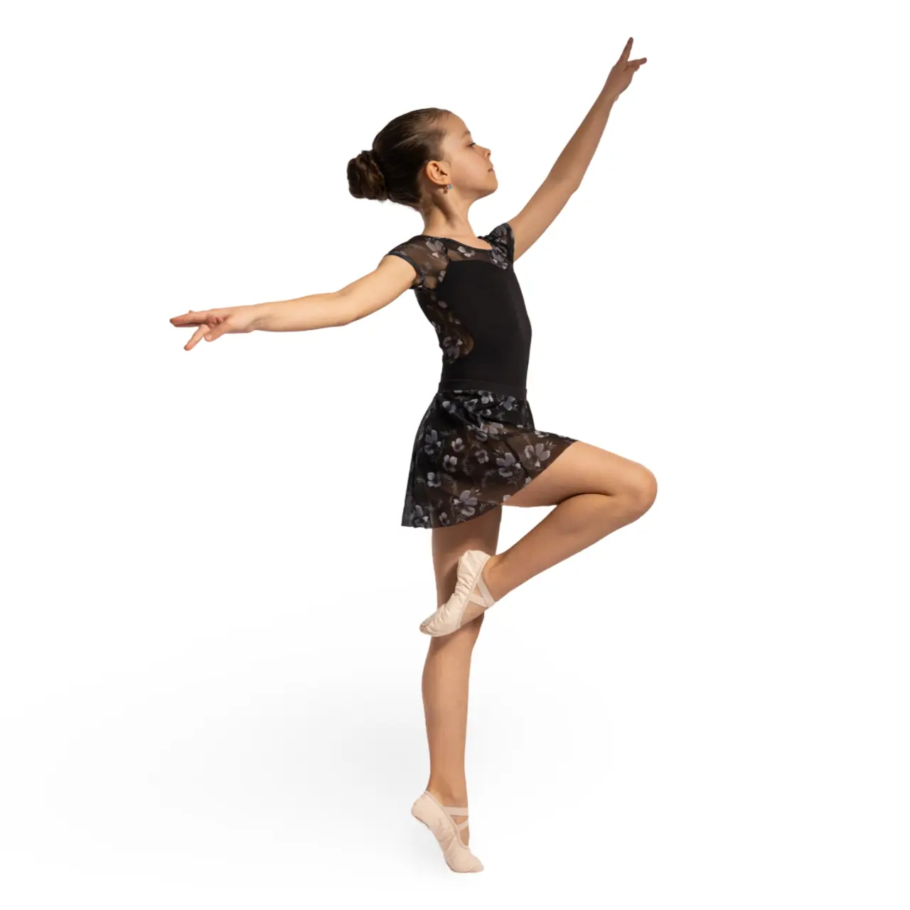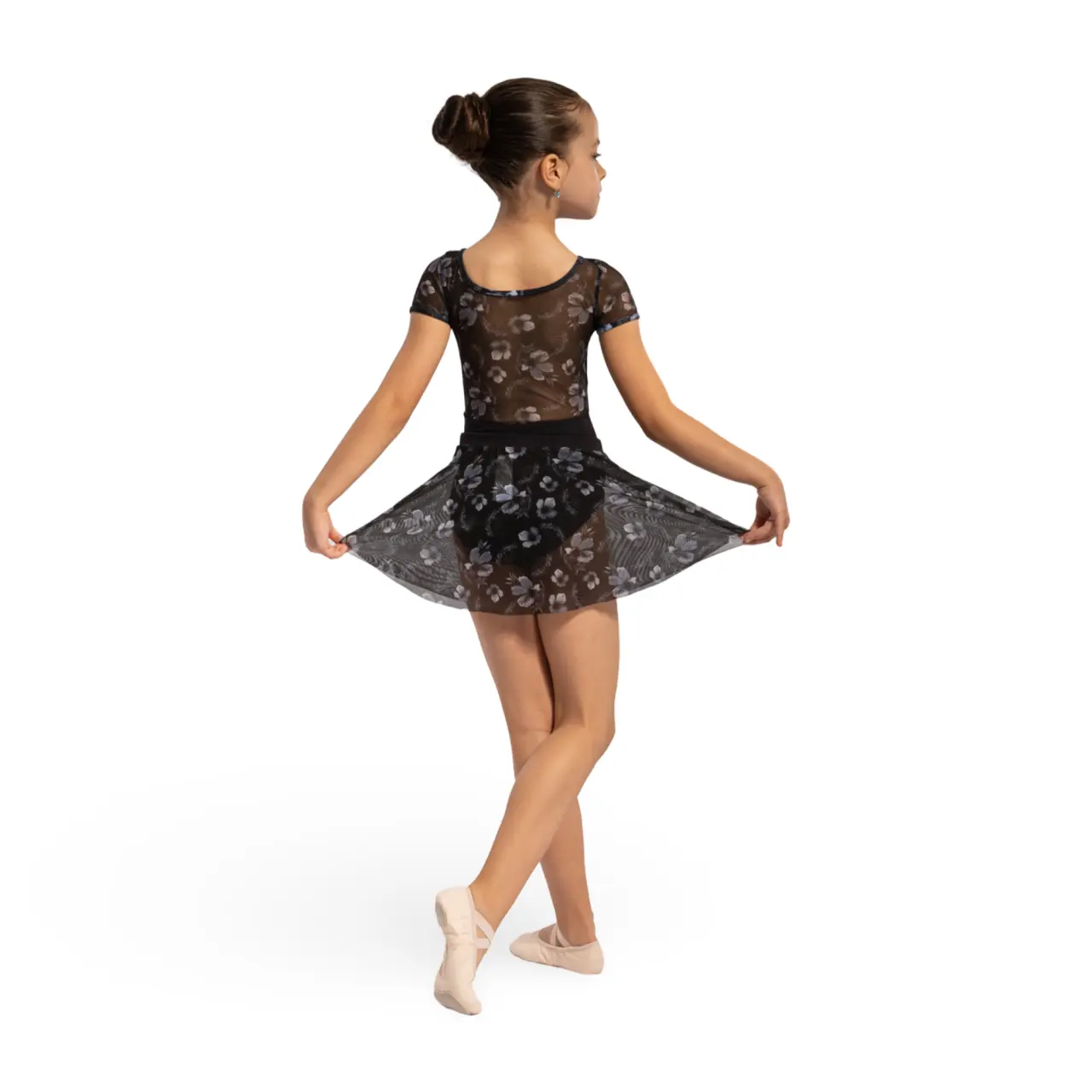 Der Grace-Rock mit Blumenmuster, mit einem einfachen gestrickten elastischen Bund, ist geeignet für alle kleinen Tänzerinnen. Die gleichmäßige Länge rundum wirkt elegant.