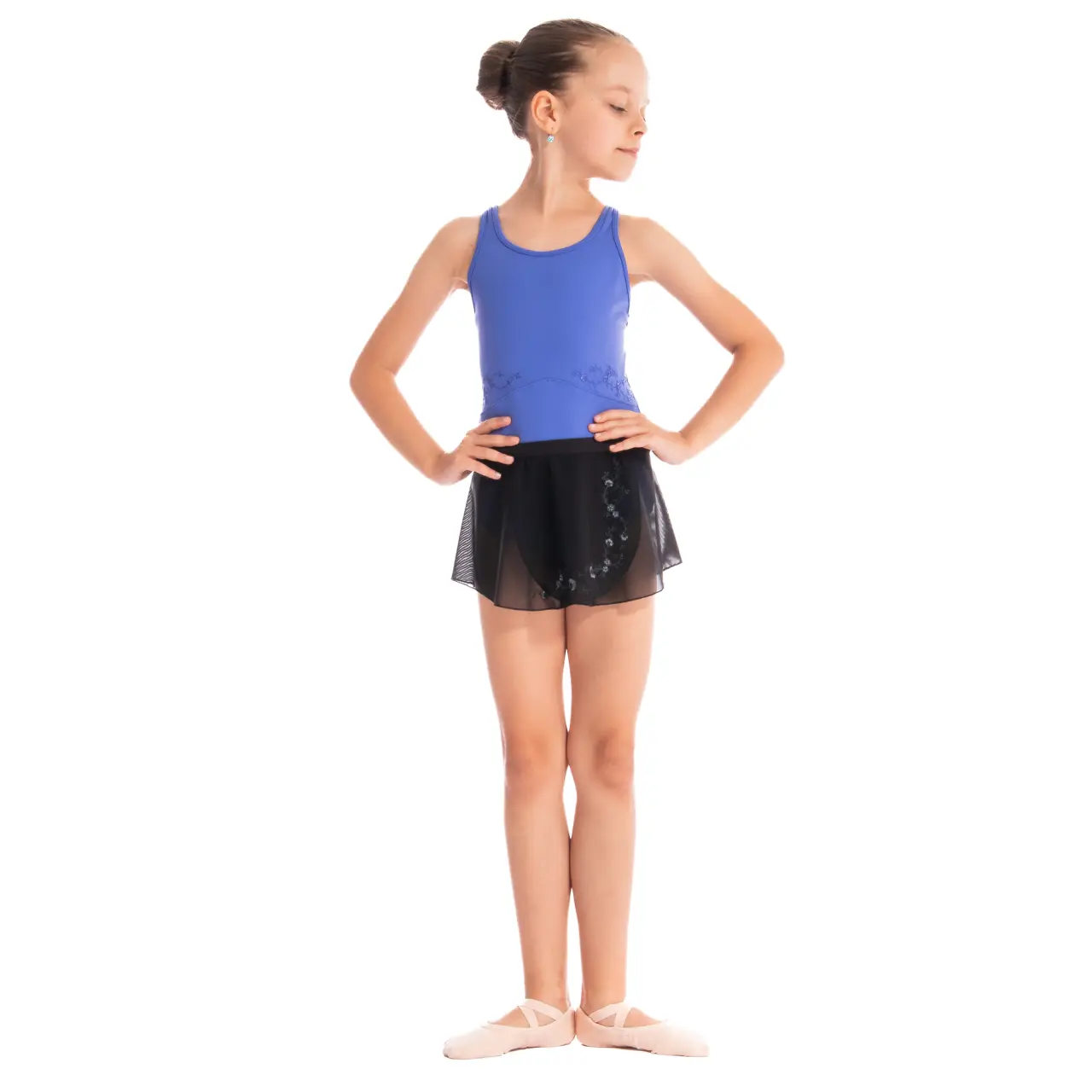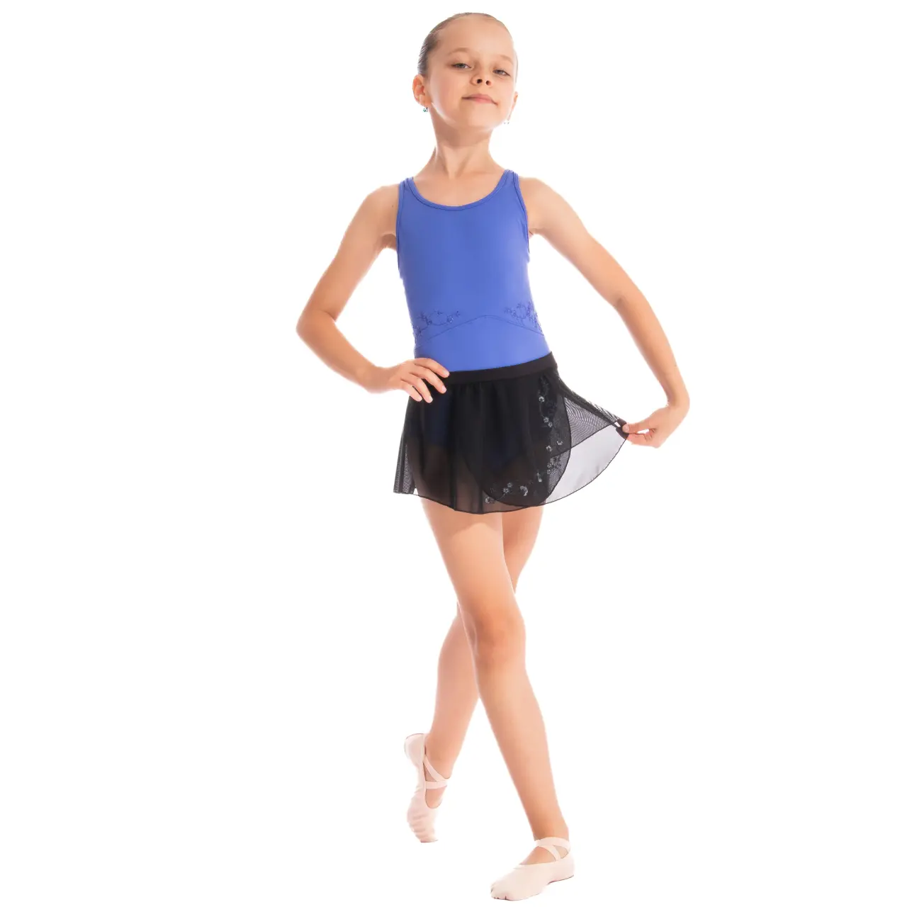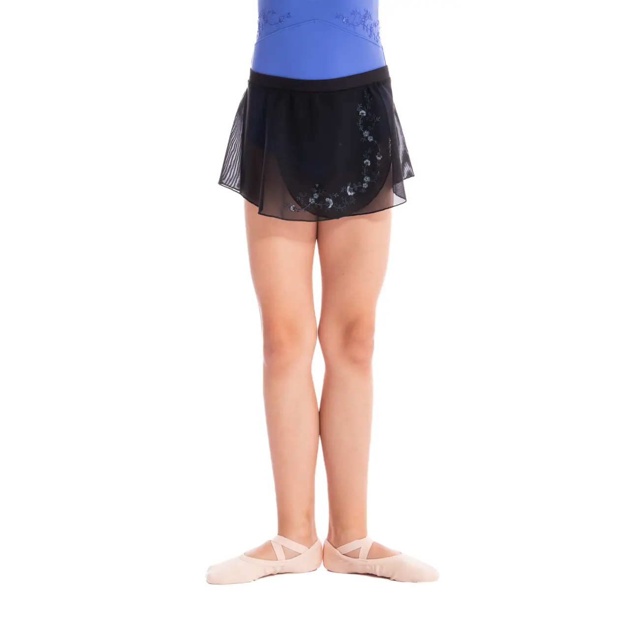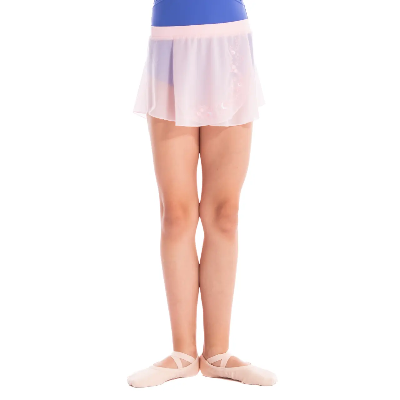Ein Röckchen, geschaffen für kleine Ballerinas, die davon träumen, auf der großen Bühne zu stehen. Gefertigt aus feinem Stoff, verziert mit gestickten Blumenmotiven am unteren Saum, verleiht es jeder Bewegung einen kleinen Hauch von Magie.