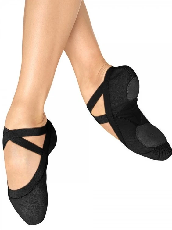 Canvas-Schläppchen Bloch Pro Elastic sind für maximalen Komfort und Bewegungsfreiheit beim Tanzen konzipiert. Ihre zweigeteilte Ledersohle bietet hervorragende Flexibilität und Unterstützung bei jeder Bewegung.