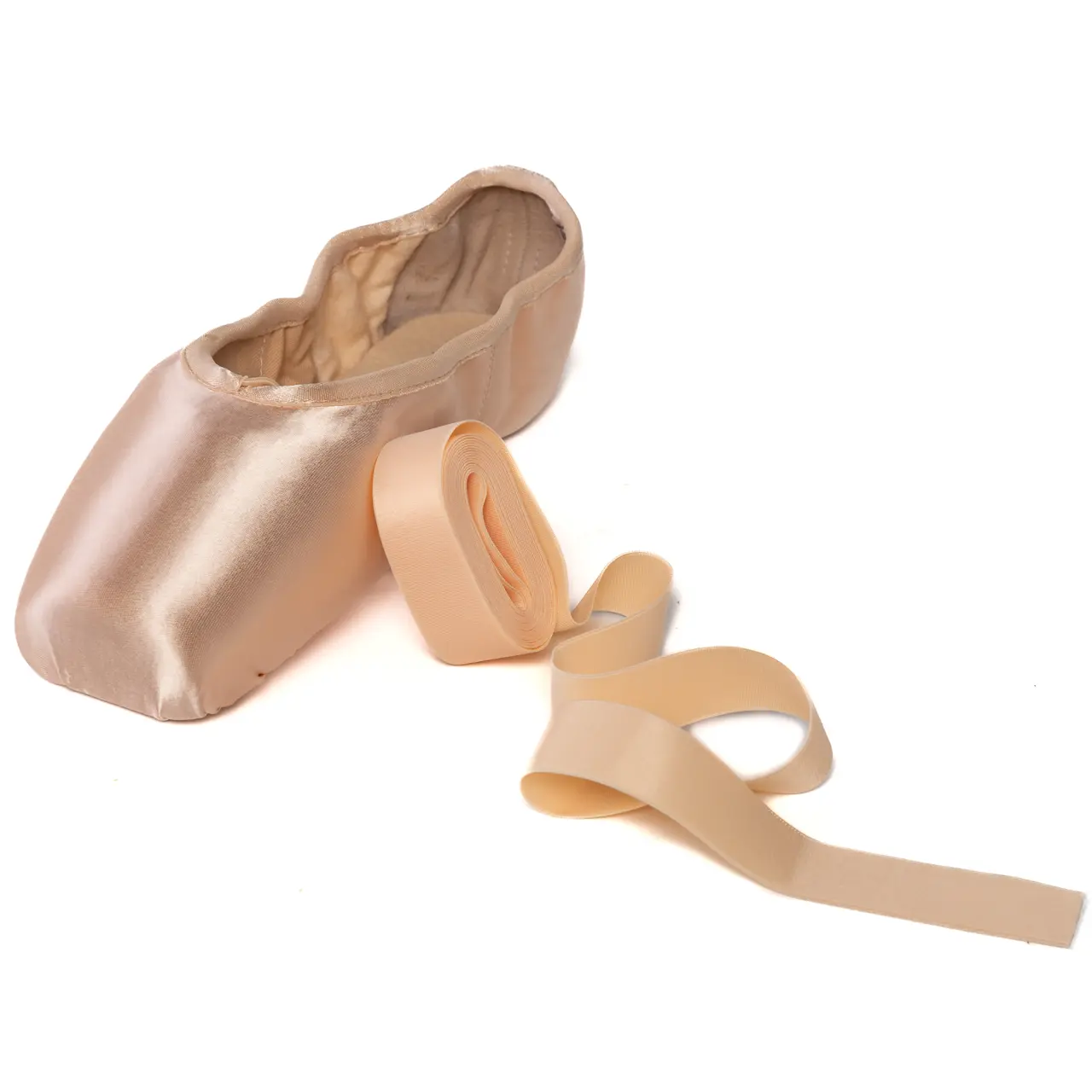Vorgeschnittene Satinbänder der Marke Bloch in einem zarten Pfirsichton werden am häufigsten von Anfänger:innen beim Arbeiten an Spitzenschuhen verwendet. Im Vergleich zu elastischen Bändern halten sie Fuß und Knöchel fester. Breite 2,3 cm, Bandlänge in der Packung 2 m. Reicht für 1 Paar Ballett-Spitzenschuhe.