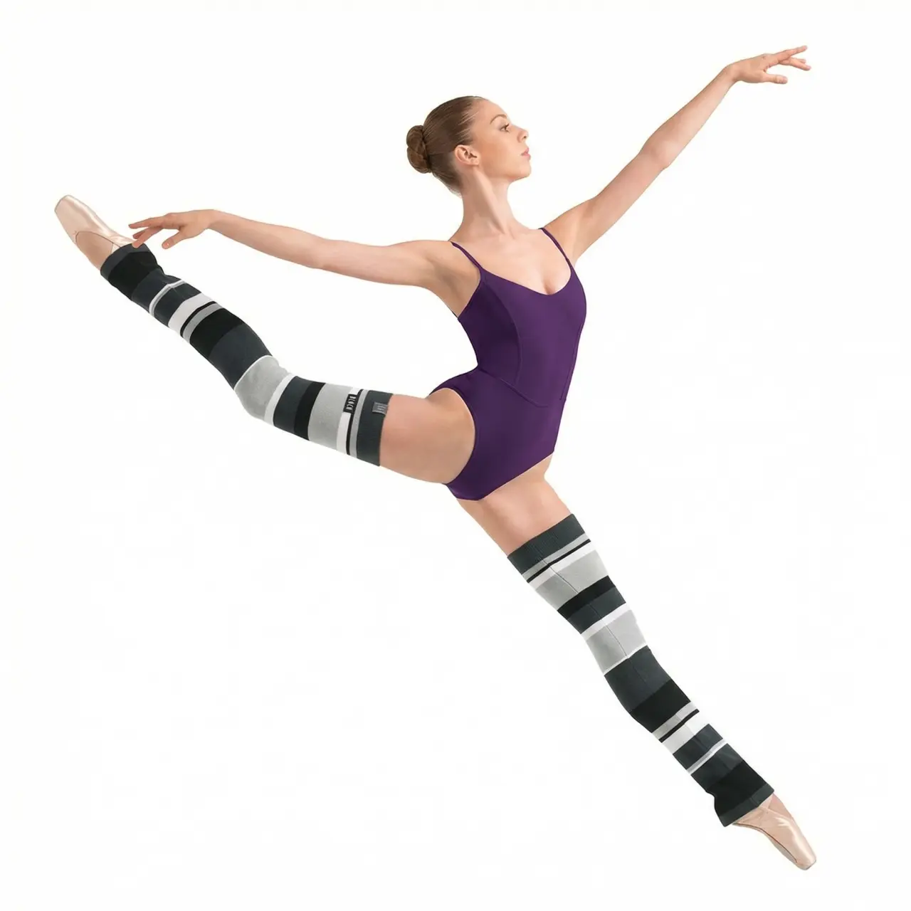Stylisches Accessoire, das jedes Tanzoutfit sofort aufwertet und gleichzeitig den Muskeln angenehme Wärme bietet. Gestreifte Tanzstulpen für Erwachsene sind die perfekte Wahl zum Aufwärmen vor dem Training, während Proben oder zwischen Choreografien. Die extra hohe Länge bis über die Oberschenkel hilft, die Muskeln warm zu halten und schafft gleichzeitig eine lange, elegante Beinlinie, die bei Bewegung besonders schön zur Geltung kommt.