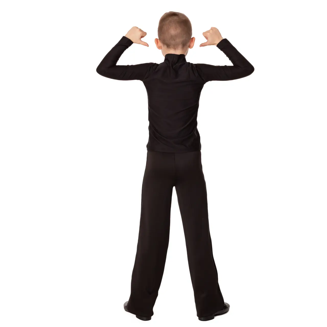 Vielseitige und bequeme Buben-Hosen für den Gesellschaftstanz – geeignet für Standard und Latein. Im Bund befindet sich ein elastisches Gummiband, das für angenehmen Tragekomfort und einfaches Anziehen ohne Gürtel sorgt. Seitliche Satin-Streifen verleihen der Hose einen eleganten, tänzerischen Look.