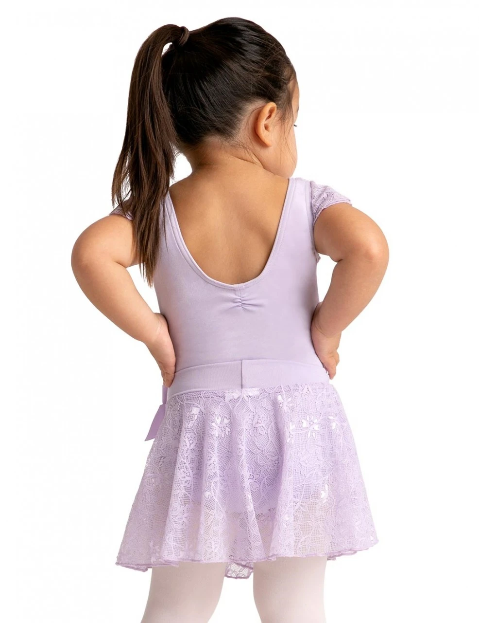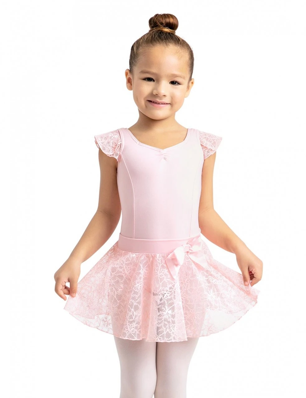 Keine Drehung kommt ohne ein Röckchen aus. Dieses mit elastischem Bund lässt sich einfach anziehen. Aus Spitze gefertigt, mit einer Satin-Schleife am Bund und mit zarten Schimmern bringt es jedes Mädchen zum Tanzen. Die Länge des Röckchens in Größe 128-134 cm beträgt ca. 24 cm. Material: Spitze, Nylon 86% und 14% Spandex.