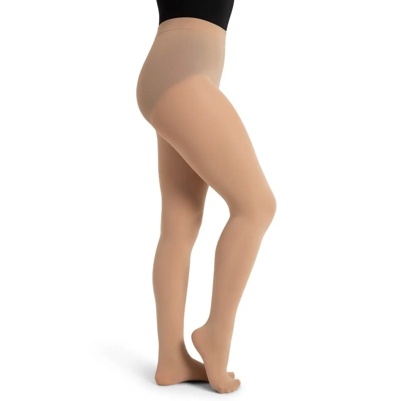 Außergewöhnlich weicher und strapazierfähiger Stoff, gestrickter Bund mit einer Breite von ca. 3,5 cm (ohne flaches Gummiband), glatte Oberfläche, hervorragender Komfort und Unterstützung ohne Einschränkung der Bewegungsfreiheit – das sind die grundlegenden Eigenschaften der Fuß-Strumpfhosen fürs Tanzen von Capezio. Ideal für Training oder Auftritte.