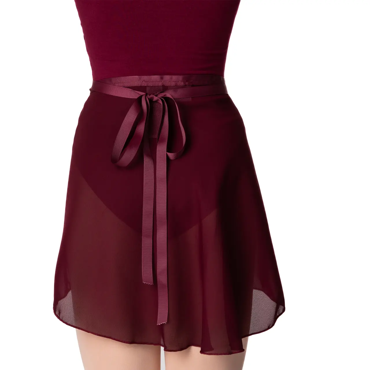 Der Ballett-Wickelrock ist aus 100% Polyester gefertigt. Er ist nicht gerafft und betont schön die Linien der Hüftpartie. Das Bindeband ist gerippt, was ein Verrutschen verhindert. Vorne ist er kürzer, hinten länger.