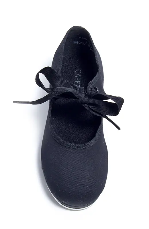 Stepptanzschuhe aus Canvas sind ideal für Anfänger. Das Obermaterial besteht aus feinem Canvas, an der Ferse ist im oberen Bereich des Schuhs ein Ausschnitt, damit er nicht auf die Achillessehne drückt. Die Taps sind vom Typ Tele Tone. U825C