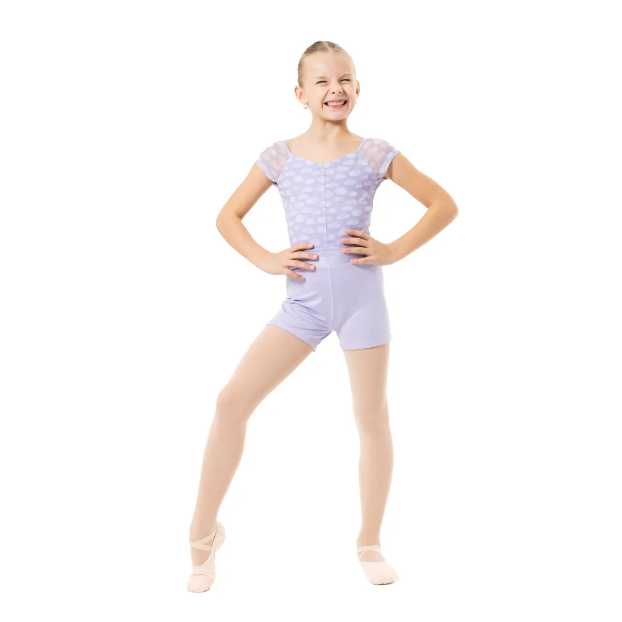 Diese bequemen Shorts <\/b>aus der limitierten Edition sind aus einer Mischung aus Polyester und Spandex gefertigt, einem elastischen und atmungsaktiven Material<\/b>. Die Beinlänge der kurzen Hosen sowie die Bundhöhe sind angenehm und schränken die Bewegung nicht ein. Ideal für Unterricht in jeder Art von Tanztraining oder Gymnastik. Farblich passen sie zu den Trikots der limitierten Cloud Capezio Edition. <\/b><\/p>