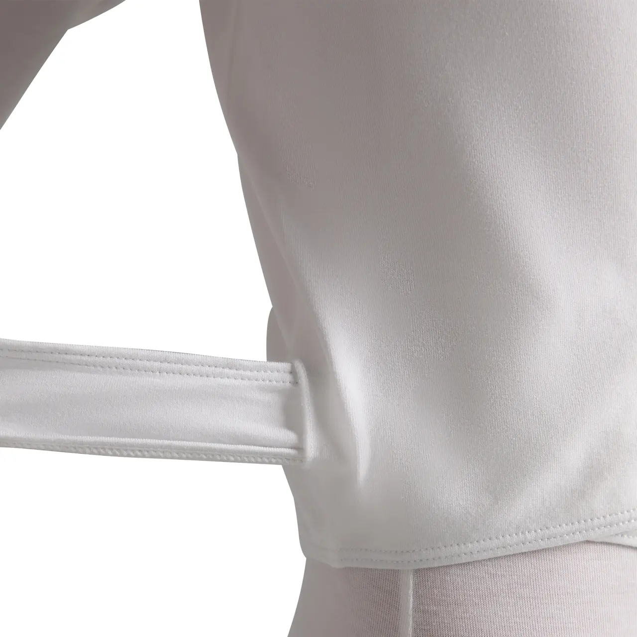 Ein Warm-up-Top für Mädchen ist ein unverzichtbarer Bestandteil der Garderobe kleiner Tänzerinnen. Dieser klassische Wickelschnitt passt sich nicht nur schön dem Körper an, sondern bietet zugleich die Möglichkeit, die benötigte Weite individuell einzustellen. Kein Wunder, dass er bei kleinen Tänzerinnen und Ballerinas nicht nur während der Aufwärmübungen, sondern auch in kühleren Tanzsälen beliebt ist. Das hochwertige Material aus 90% Baumwolle und 10% Elastan ist angenehm auf der Haut, warm und gleichzeitig elastisch genug, um keine Bewegung einzuschränken. Es wird in kaltem Wasser mit einem milden Waschmittel ohne Chlor gewaschen und zum Trocknen frei aufgehängt.