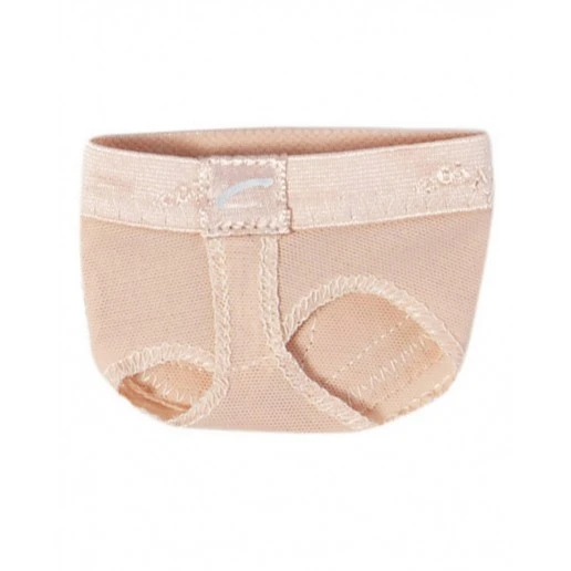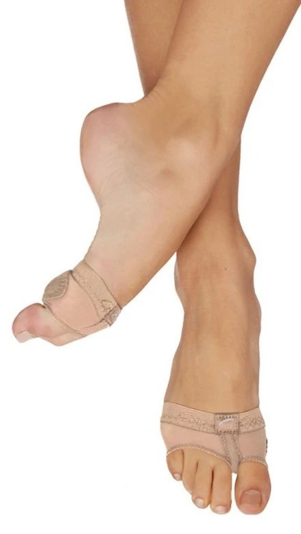 Schützen Sie Ihre Fußsohlen bei Drehungen. An der Unterseite befinden sich zwei separate Polster: eines für den "Ballen" des großen Zehs und eines für die "Ballen" der übrigen Zehen. Ähnlich sind auch die Öffnungen zum Überziehen gestaltet. Eine ist für den großen Zeh vorgesehen. Die übrigen Zehen haben eine separate Öffnung. Der Umfang, der den "Zehenschoner" am Fuß hält, ist ein elastisches Gummiband mit dem Capezio-Logo. Das Material, das die Zehen umschließt, ist Nylon Lycra Spandex.