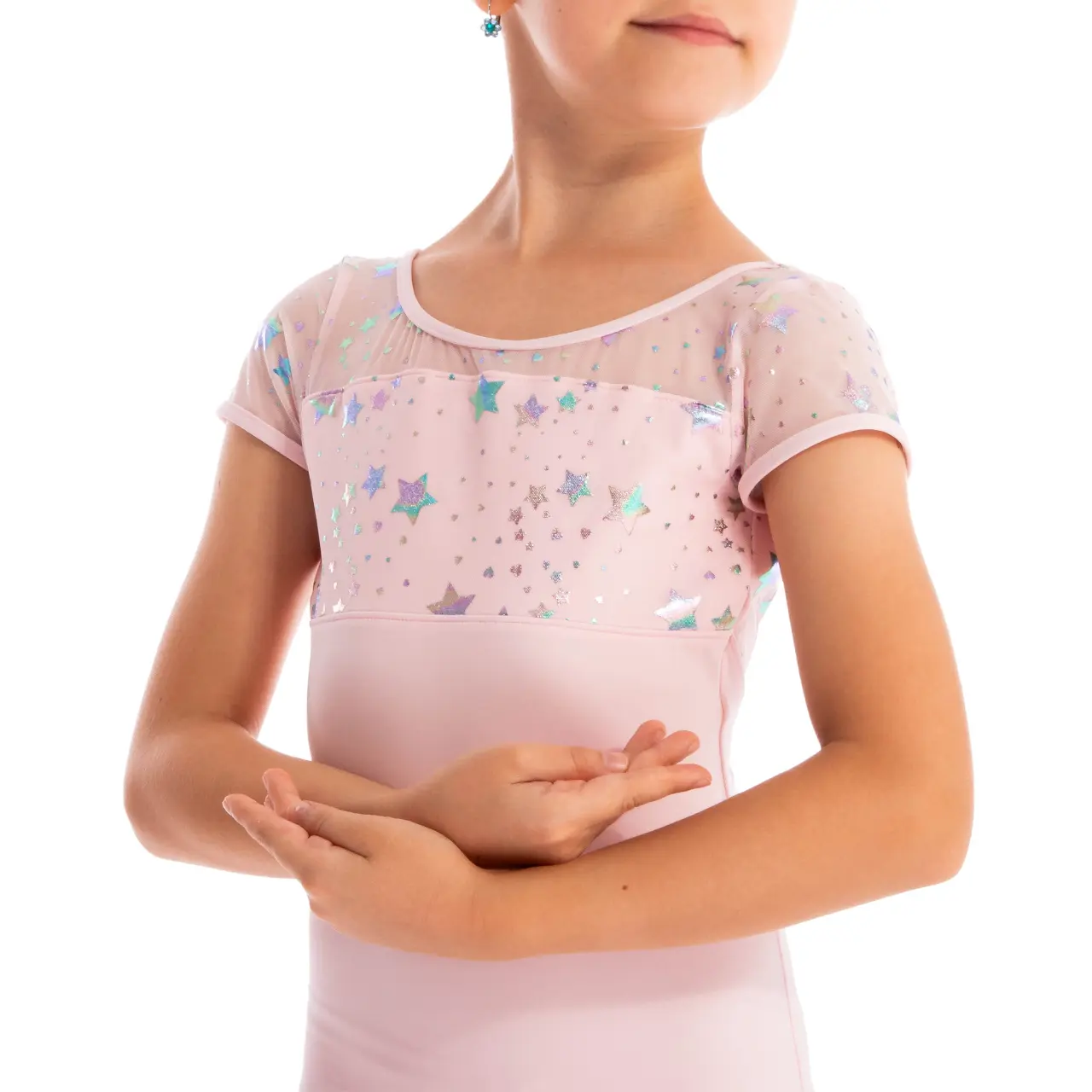 Ein Mädchentrikot mit Mesh-Einsatz, übersät mit kleinen und größeren Sternchen, macht kleinen Tänzerinnen Freude. Aus hochwertigem Material, einer weichen Mischung aus Polyester und Spandex, fühlen sich die Mädchen bequem. Das elastische Mesh im oberen Teil des Trikots setzt sich auch am Rücken fort. Der zarte V-Ausschnitt betont die Körperhaltung. Die Ballett-Beinlinie (der Beinausschnitt ist nicht zu hoch geschnitten) sorgt für Komfort und Sicherheit bei jeder Bewegung. Die Applikation der leuchtenden Sternchen gibt es beim Tanztrikot in Lavendel, Rosa und Hellblau. Die schwarze Farbe ist ohne Applikation. Wirkt schlicht, elegant und vor allem zeitlos.