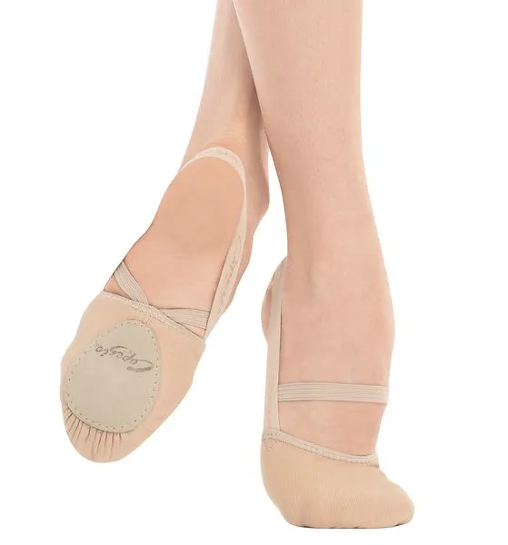 Voll elastische, hochwertige Tanzschläppchen passen sich perfekt der Form des Vorderfußes an. Die Innensohle ist im oberen Bereich mit Mikrofaser gefüttert. Ein elastisches Band umschließt den Spann. An der Unterseite ist Leder mit dem Capezio-Logo aufgenäht. Die elastischen Gummibänder zur Befestigung an der Ferse sind zweifach. Das eine, dünnere, ist mit Silikon kombiniert, das ein Verrutschen des Bandes verhindert. Das zweite, breitere, mit dezentem Capezio-Logo ist weicher, mit gebürstetem Nylon unterfüttert für ein angenehmes Gefühl. Sie sind ausgezeichnet. Ideal für Wettbewerbe oder Aufführungen.