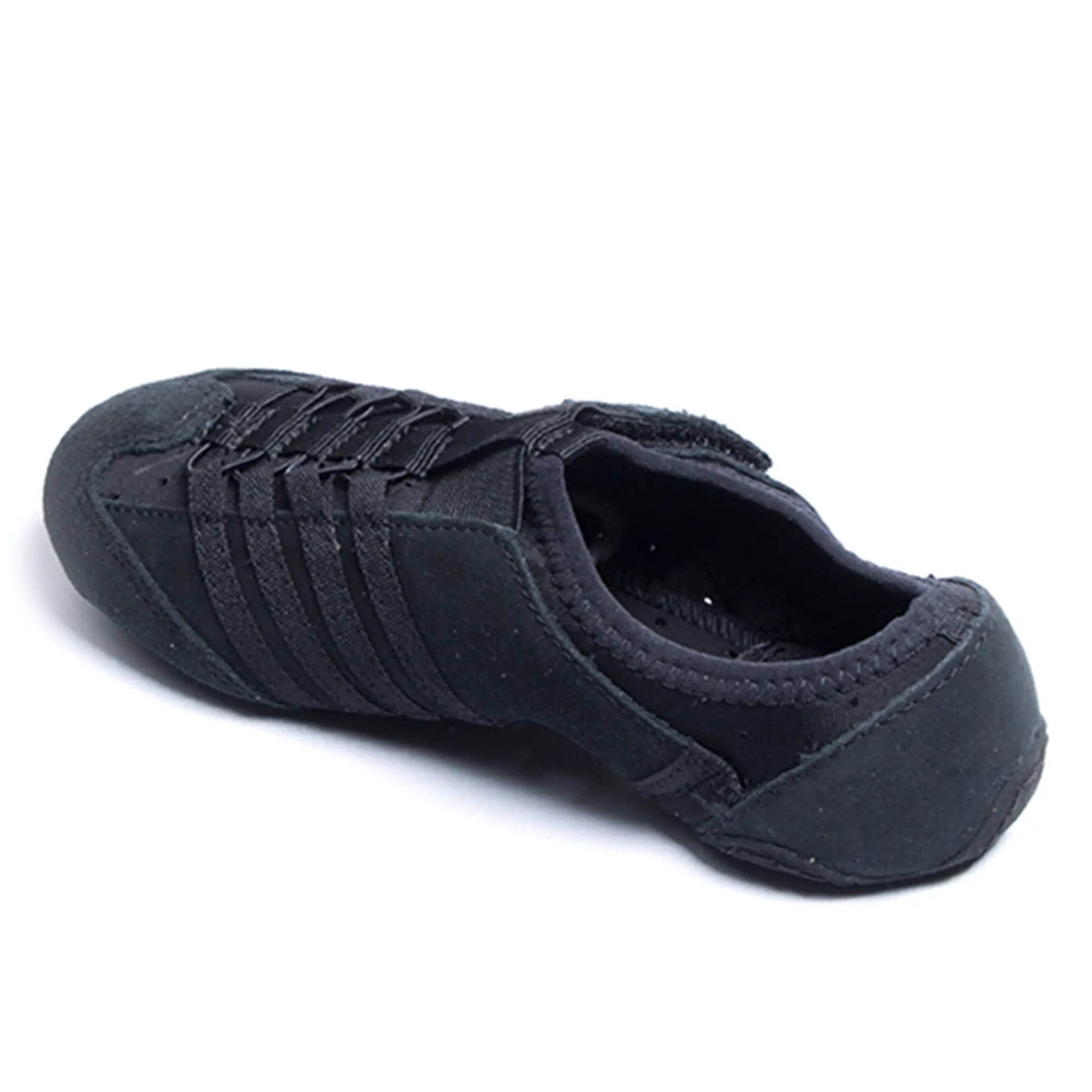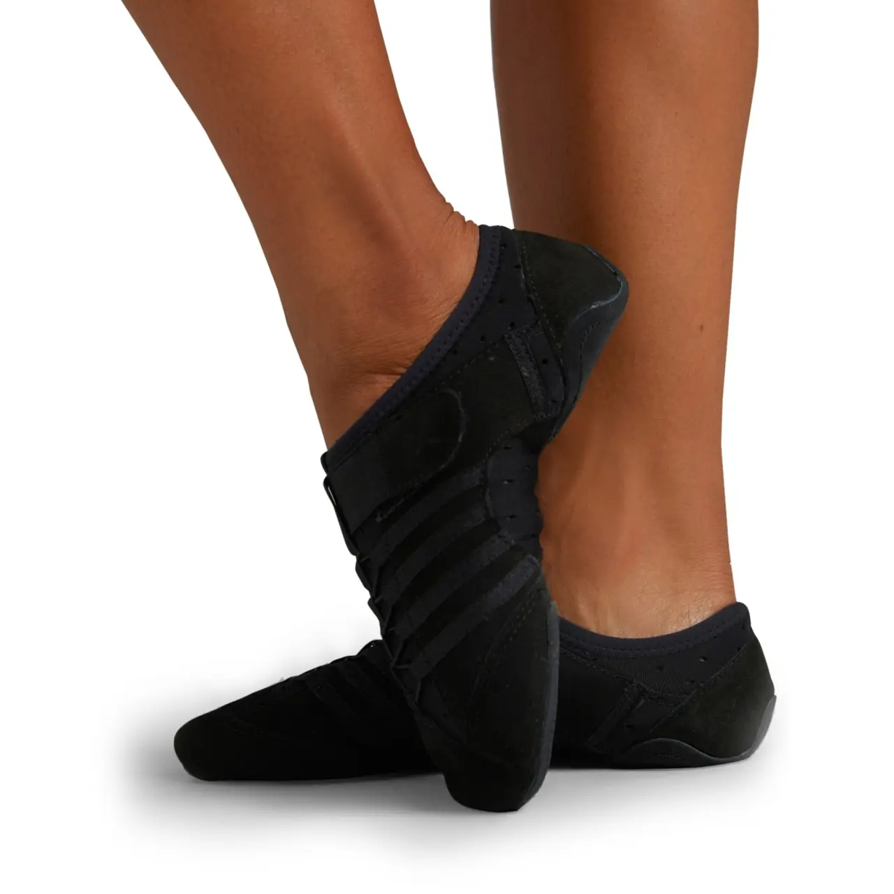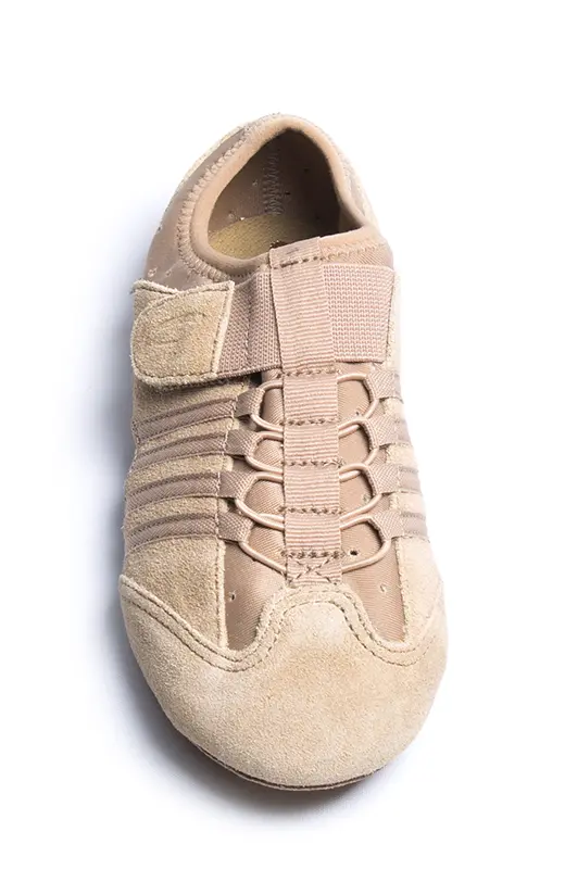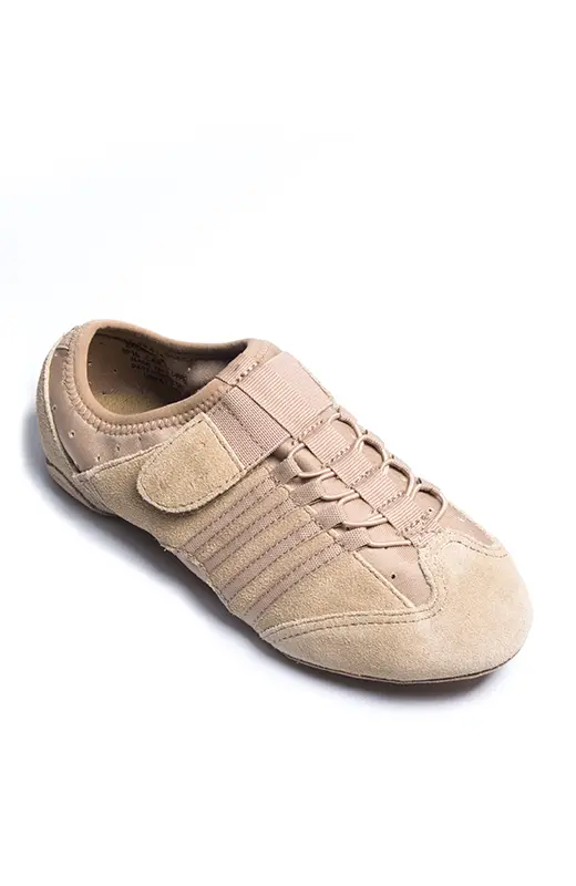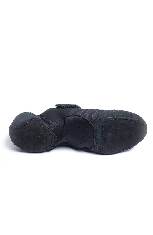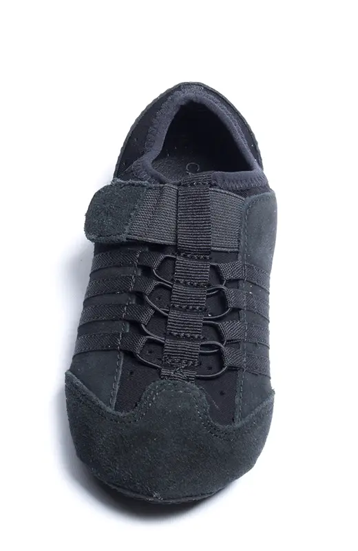 Jazzschuhe mit geteilter Sohle und verstellbarem Klettverschluss. Das Obermaterial besteht aus Wildleder, es wird perforiertes Neopren sowie elastische Elemente verwendet. Der Schuh bietet dem Fuß der Tänzerin/des Tänzers ausreichend Halt und ist zugleich atmungsaktiv. Am Rist liegt er eng an. Die geteilte Wildledersohle sorgt für Flexibilität. Der Capezio Jag Schuh steht außerdem für einfaches An- und Ausziehen.