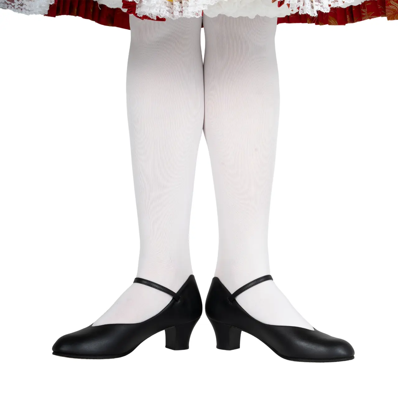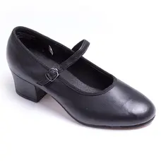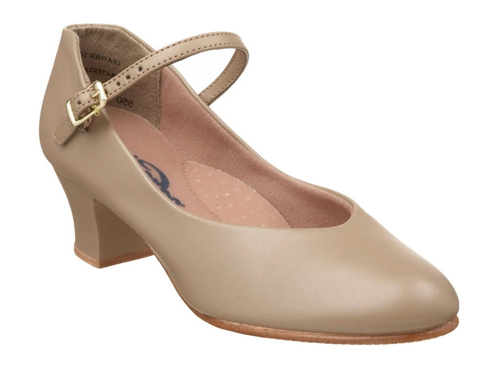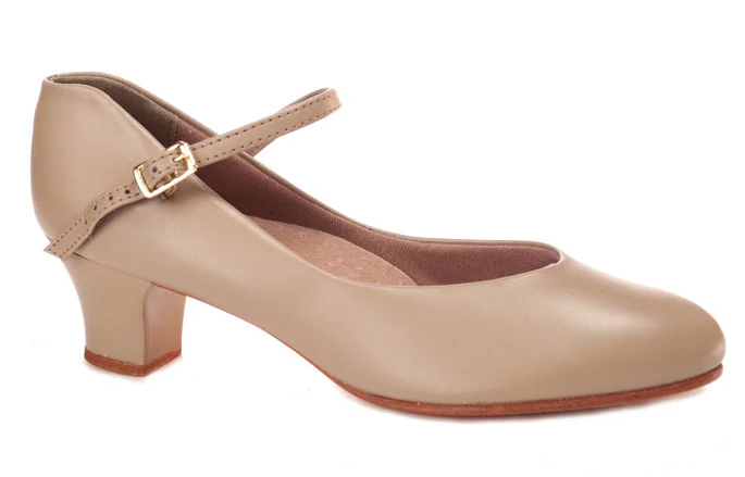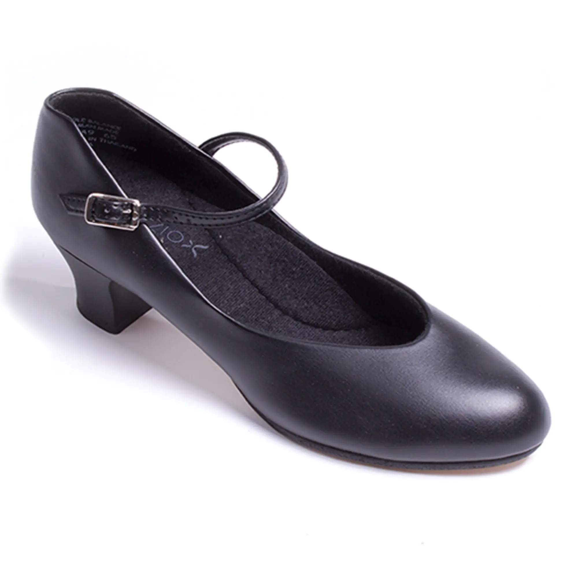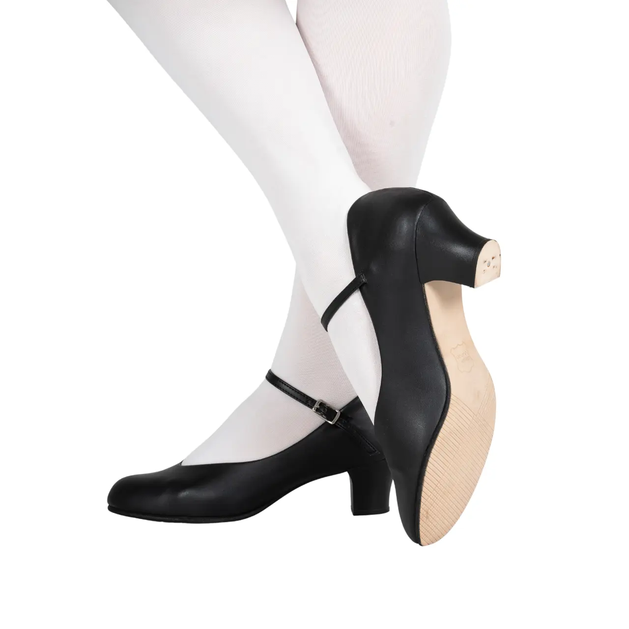 Der Knöchelriemen hält den Fuß fest an seinem Platz und der 3,81 cm (1.5") hohe Absatz bietet die ideale Balance zwischen Eleganz und Stabilität. Erwähnenswert ist auch der Ausschnitt an der Achillessehne, der Druckstellen verhindert. Das Obermaterial des Schuhs ist aus Kunstleder gefertigt. Footlight sind beliebt nicht nur bei Tänzerinnen des Volks- und Charaktertanzes, sondern auch bei Stepptänzerinnen (nach dem Nachrüsten von Taps/Plättchen) und eignen sich außerdem für verschiedene gesellschaftliche Anlässe.