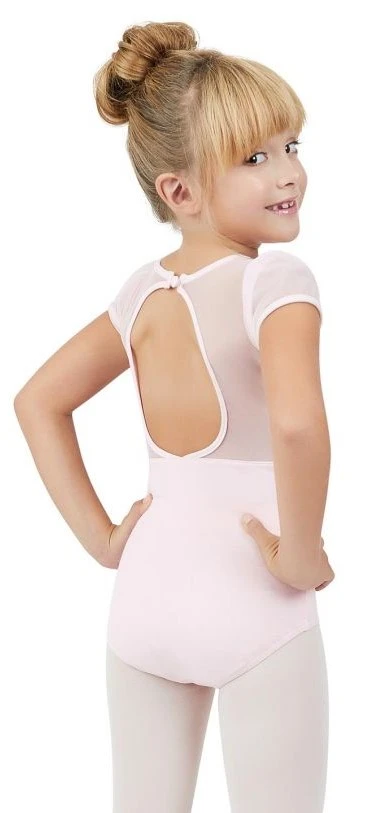 Wieder einmal etwas Ungewöhnliches. Das Balletttrikot hat wunderschöne, bauschige Ärmelchen. Am Rücken befindet sich ein runder Ausschnitt, der an ein Schlüsselloch erinnert. Der Rumpf des Trikots besteht aus 90% Baumwolle und 10% Lycra/Spandex. Im Vorderteil ist es vollständig gefüttert. Die Ärmelchen sind aus 96% Polyester und 4% Spandex. Es wird empfohlen, in kaltem Wasser zu waschen. Lassen Sie das Trikot an der Luft trocknen.