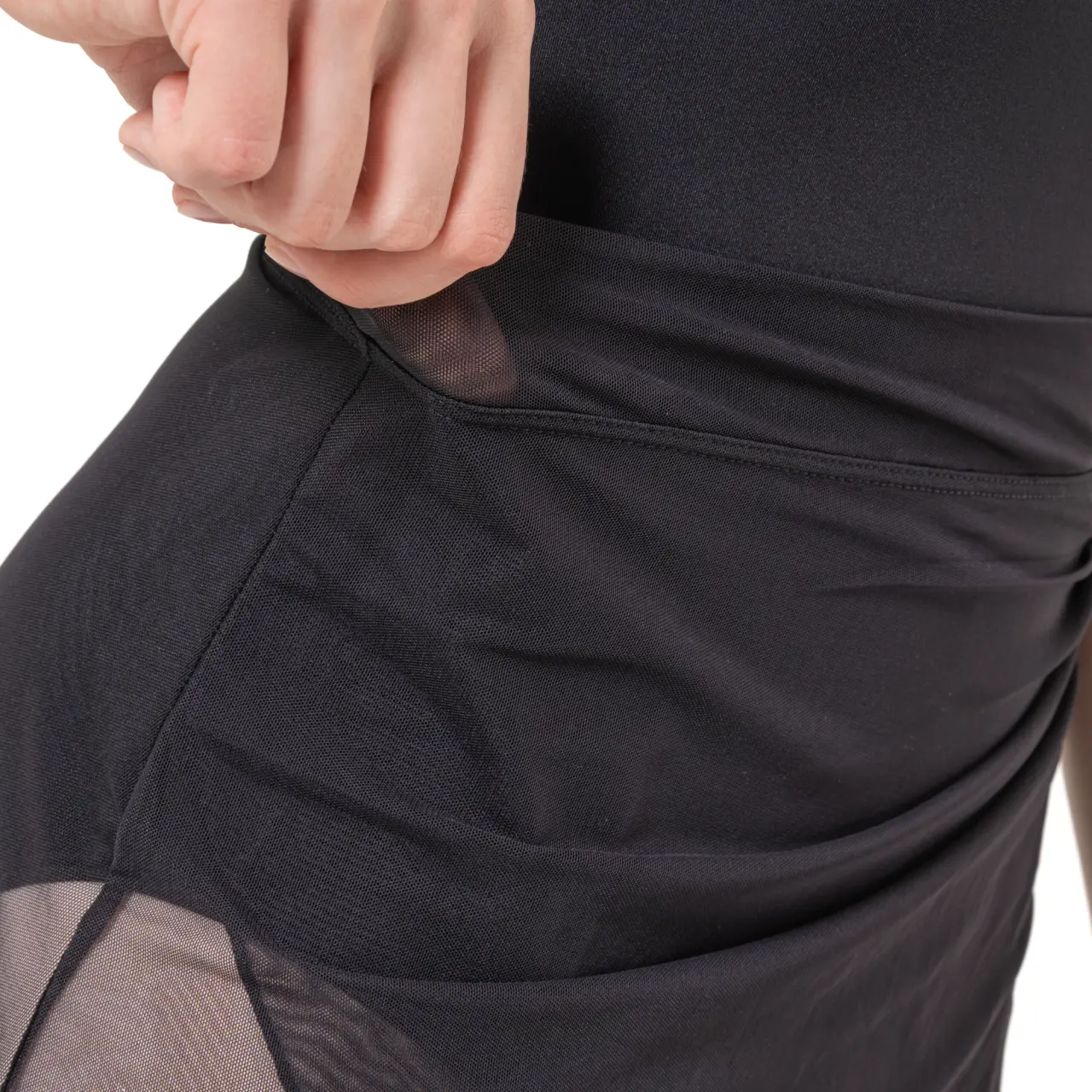 Limitierte Edition, ein Rock für Damen, der ein Spiegelbild von Eleganz und Andersartigkeit ist. Hergestellt aus einer fließenden, elastischen Mischung aus Polyester und Spandex, die über einen zweilagigen Mesh-Bund verfügt, umschließt er die Silhouette. Der vordere Teil mit überlappendem Mesh-Design ist ein Detail, das den Reflection-Rock anders macht als die anderen. Dieser Schnitt ist geeignet auch für Figuren mit geraden Hüften.