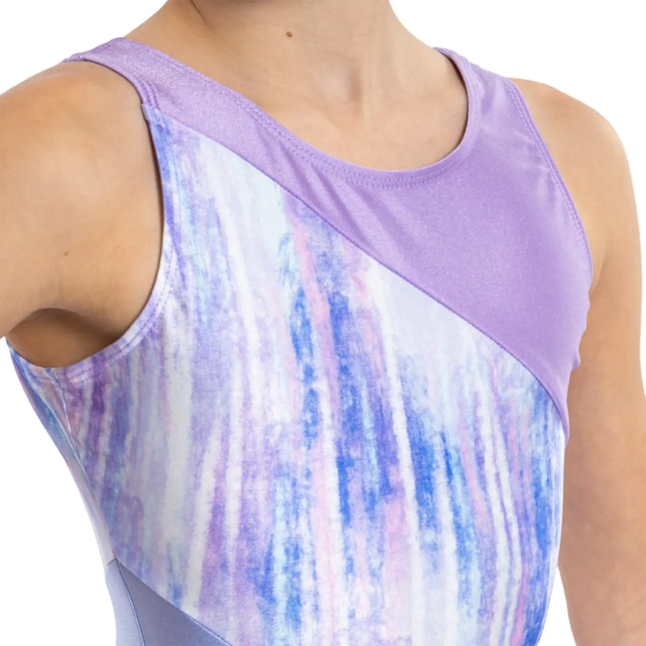 Ganzanzug mit breiten Trägern und kurzen Beinen von Capezio ist hergestellt aus einer weichen Mischung aus Nylon und Lycra. Angenehm auf der Haut, glatt und elastisch sorgt er für ein bequemes Tragegefühl. Er ermöglicht freie Bewegung, Leichtigkeit und Sicherheit bei der Ausführung anspruchsvoller Elemente. Farblich abgestimmte Töne aus Helllila, Blau und einem bunten Farbteil in den genannten Farbtönen lassen die kleine Turnerin oder Tänzerin strahlen.