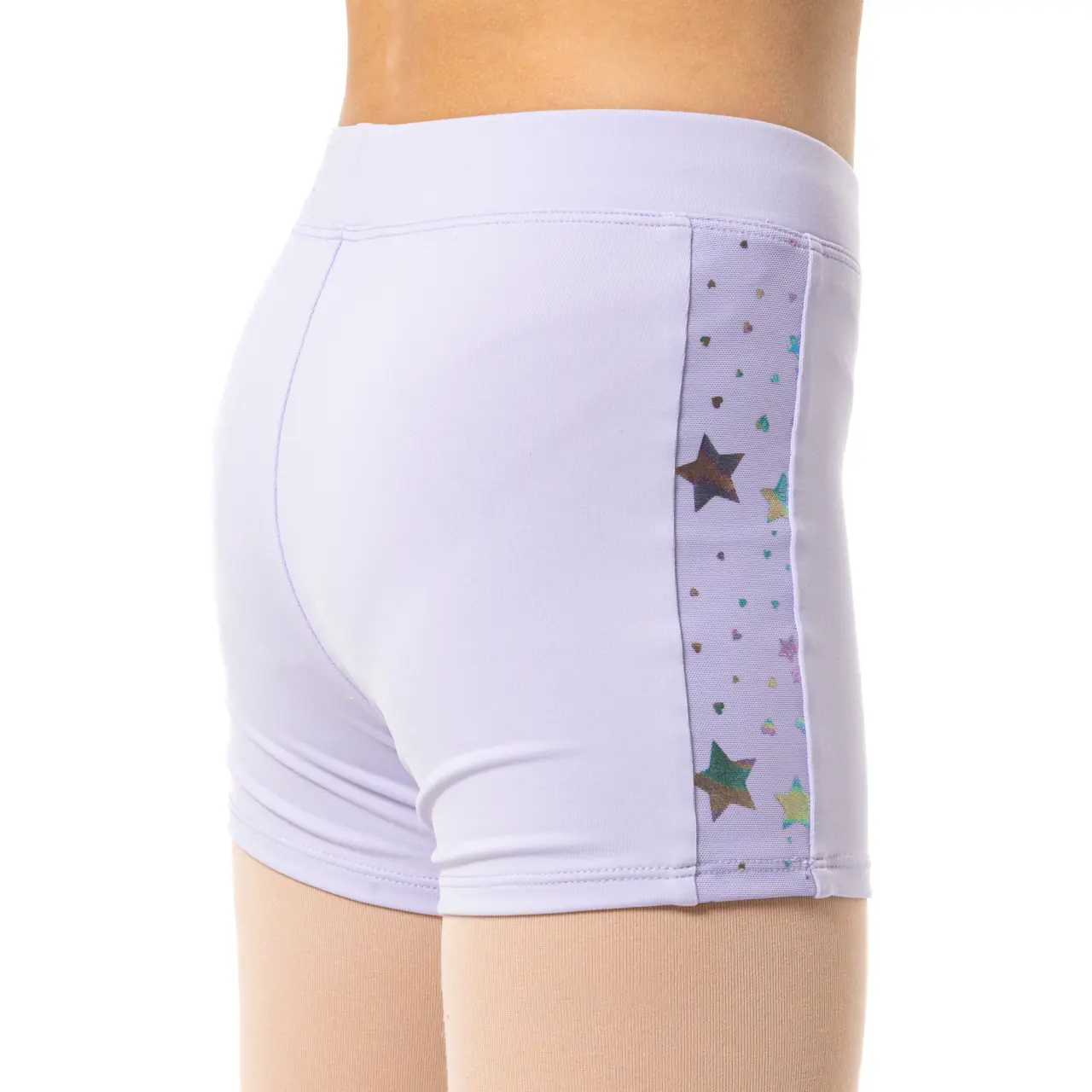 Shorts mit glänzenden Sternchen an den Seiten, die garantiert den Tanzsaal erstrahlen lassen. Sie können von Mädchen getragen werden, die sich mit verschiedenen Tanzstilen beschäftigen. Sie sind ideal auch für Bühnenauftritte. Hergestellt aus einer weichen Mischung aus Polyester und Spandex bieten sie Komfort und Flexibilität bei der Bewegung. Die schwarze Farbe, ohne Applikation der glänzenden Sternchen, ist klassisch und zeitlos. Zu diesem limitierten Angebot können Sie ein Crop-Top aus derselben Edition ergänzen.