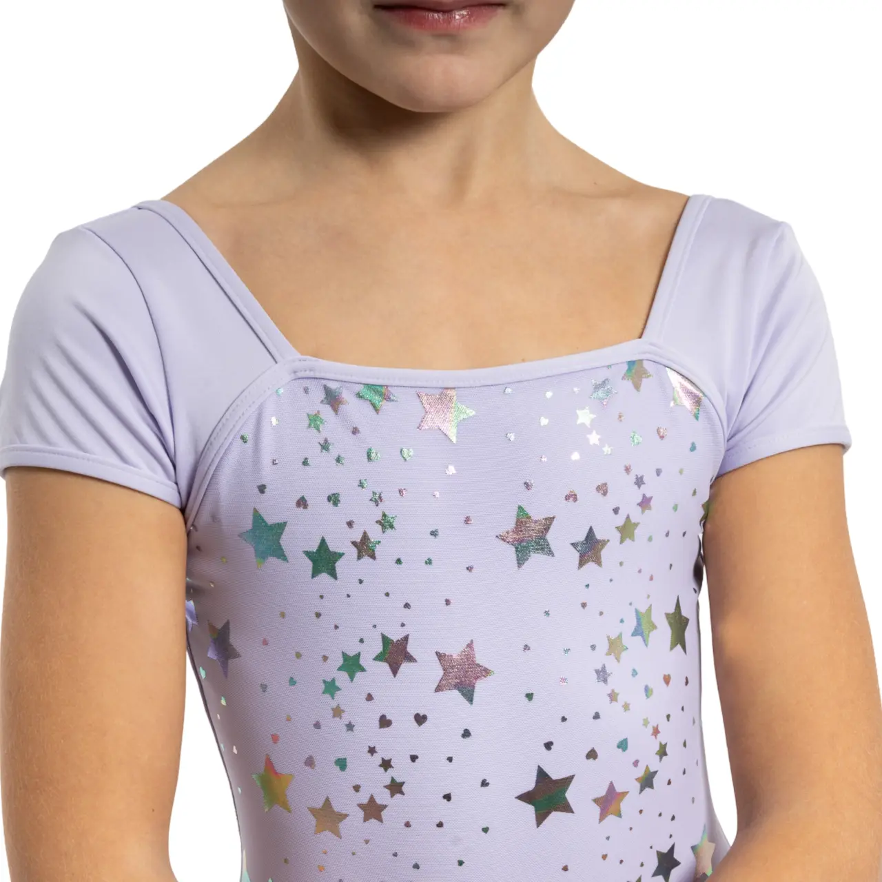In diesem kurzärmeligen Trikot mit Röckchen wird Ihre kleine Tänzerin strahlen. Lavendel und Hellblau sind mit glänzenden Sternchen übersät. Die weiche Mischung aus 88% Polyester und 12% Spandex, aus der das Body gefertigt ist, ist ein hochwertiges, elastisches, glattes und bequemes Material, wobei das einlagige Mesh-Röckchen jede Bewegung zur Geltung bringt. Es ist aus 90% Nylon und 10% Spandex gefertigt.