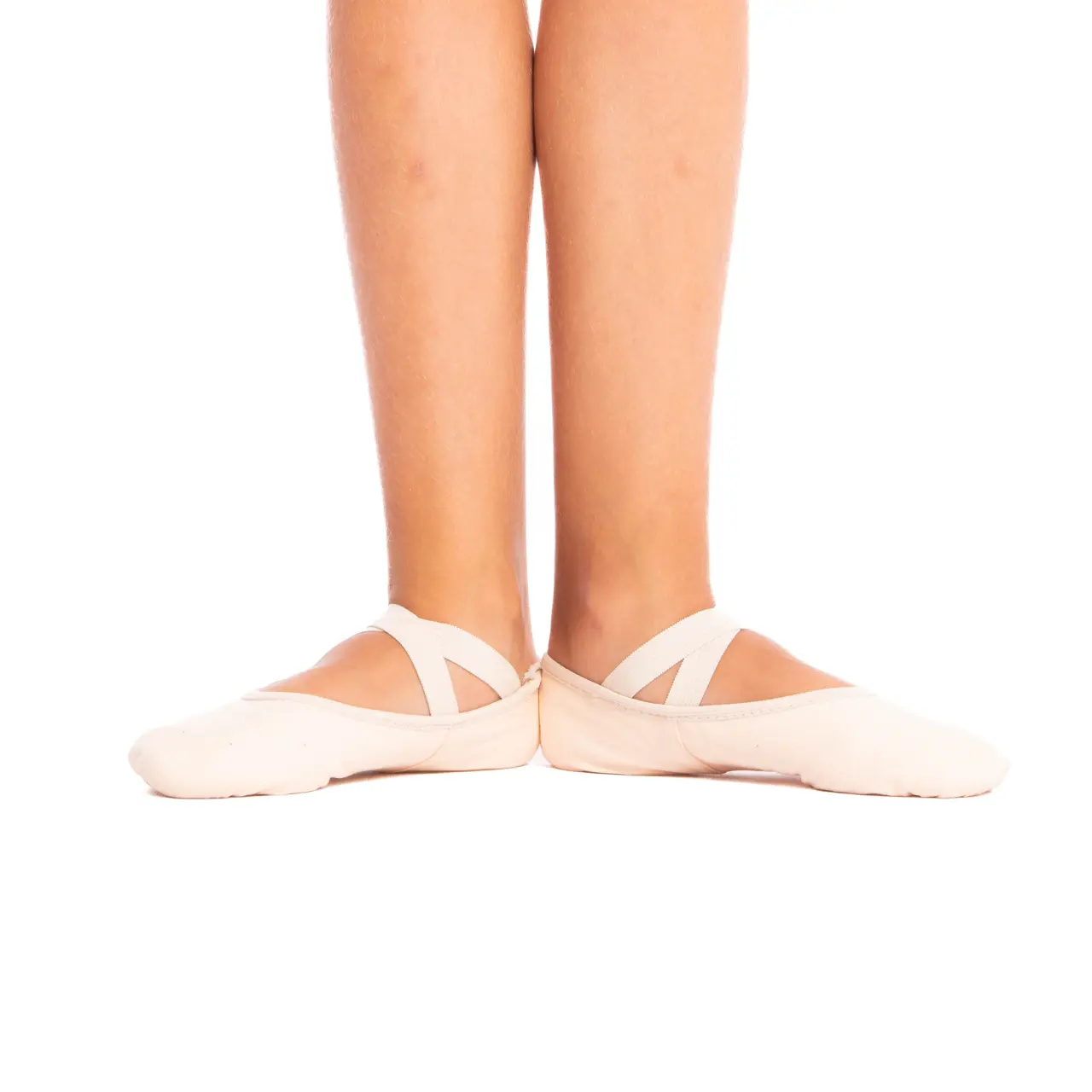 Leinwand-Ballettschläppchen für Kinder Stella, mit geteilter Ledersohle und mit überkreuzten Gummibändern über dem Spann sind das ideale Modell für Anfänger oder auch erfahrenere Tänzer, die nach zuverlässigen, anpassungsfähigen, atmungsaktiven und preisgünstigen Tanzschuhen suchen.