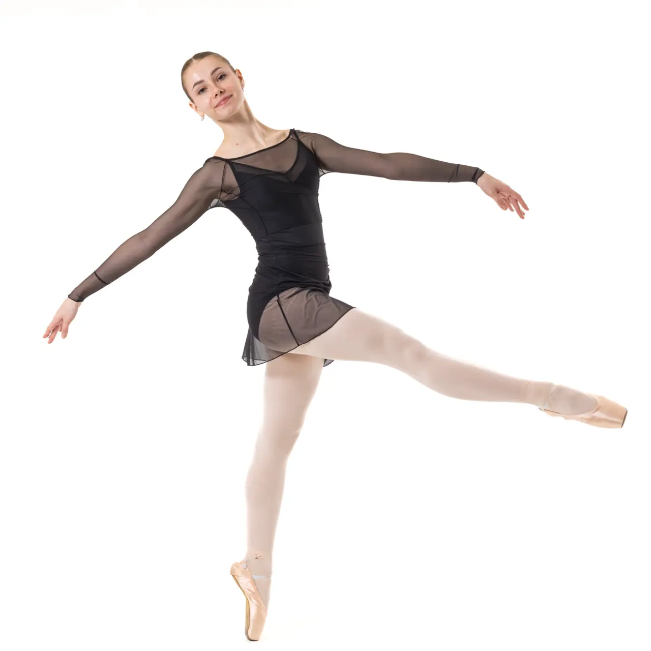 Zartes Trikot, Ballettanzug mit dünnen Trägern aus einer weichen Mischung aus Polyester und Spandex gefertigt, in Kombination mit Mesh verleiht es der Silhouette klare und glatte Linien.