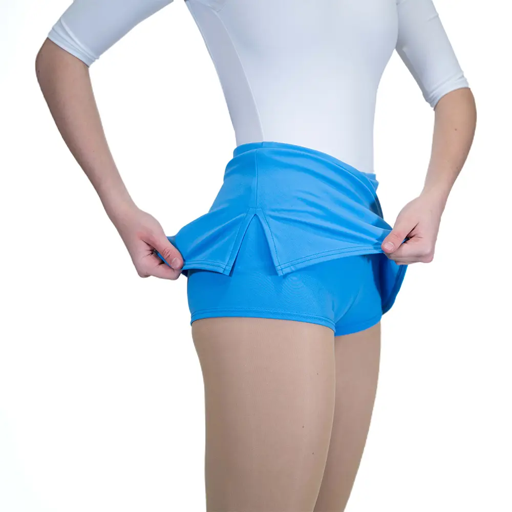 Ein Rock mit eingenähten kurzen Innenshorts kann nicht nur für Tänzerinnen, sondern auch für Sportlerinnen super sein. An den Seiten befinden sich kleine Schlitze, damit Sie sich frei bewegen können. Das Material, das für die Herstellung verwendet wurde, besteht zu 90% aus Nylon und zu 10% aus Spandex. Das Röckchen hat einen A-Linien-Schnitt. Im Bund ist ein 2,5 cm breites elastisches Gummiband eingenäht. Dieses Modell wirkt schlicht und stilvoll.