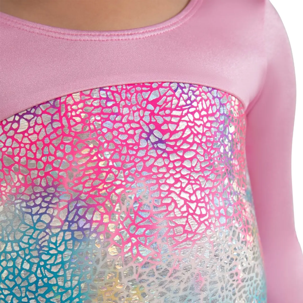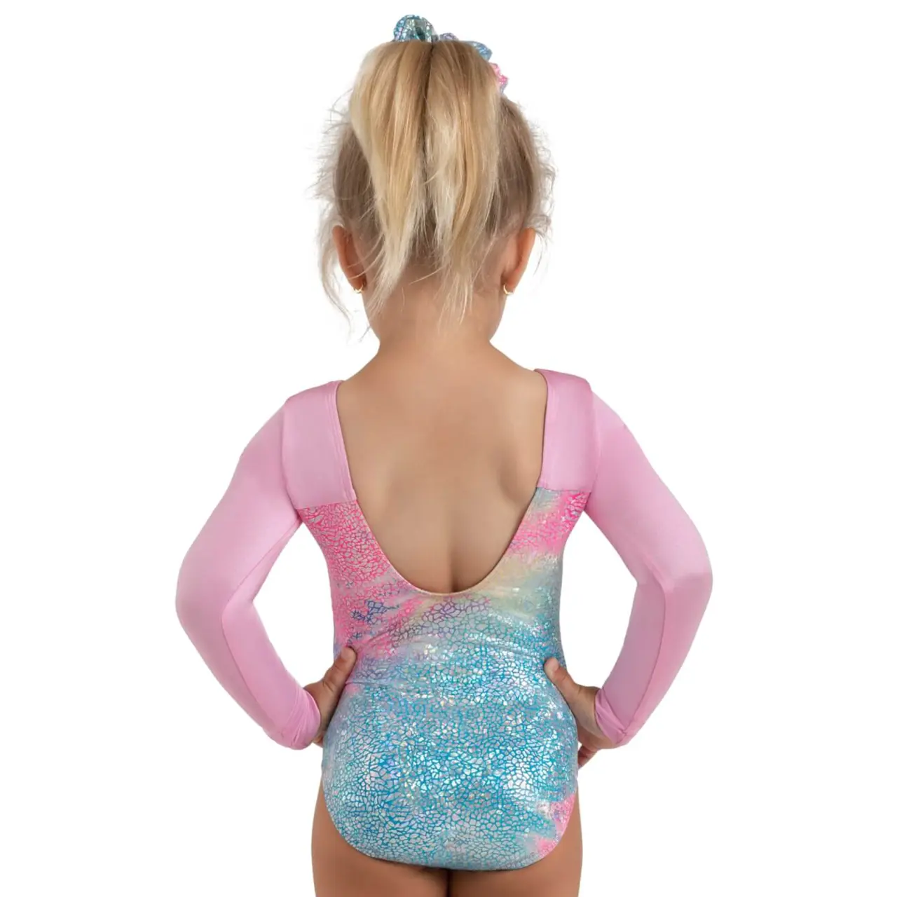 Strahlen Sie bei jedem Training oder Auftritt mit dem Trikot Lightwave Leotard aus der limitierten Kollektion Unicorn Disco! Die Vorderseite des Trikots kombiniert einen eleganten, einfarbigen Stoff mit einem bunten, der einen dynamischen und verspielten Look verleiht. Die Rückseite ist mit einem Ausschnitt unterhalb der Schulterblätter abgeschlossen, der die Figur betont und ein modernes, stilvolles Detail hinzufügt. Das langärmelige Trikot ist aus einer hochwertigen Mischung aus Nylon und Lycra gefertigt und bietet Komfort und Flexibilität bei jeder Bewegung. Zum Lieferumfang gehört auch ein passendes Haargummi für einen perfekt abgestimmten und funkelnden Look.