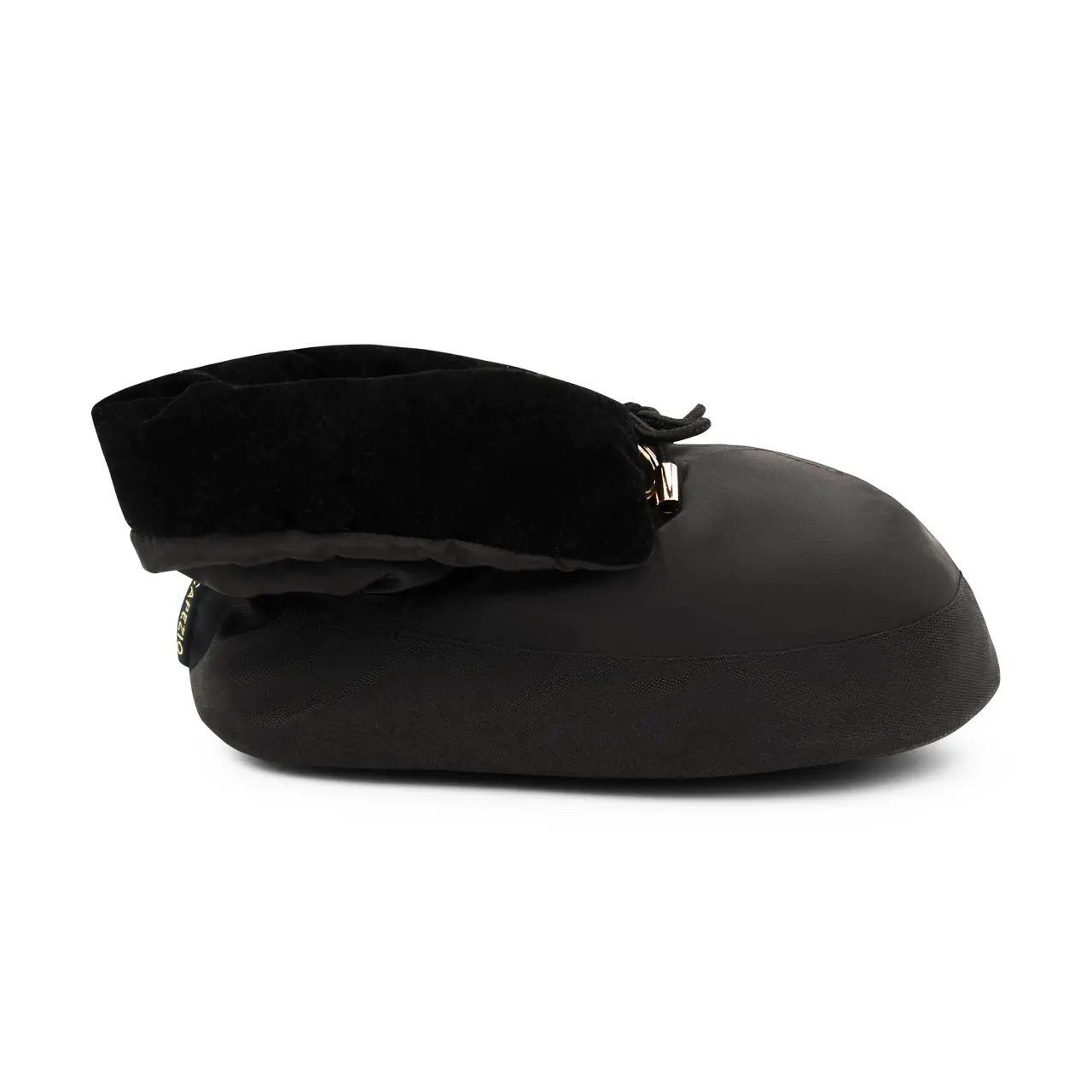 Verleihen Sie Ihrem Tanzoutfit Stil und Komfort mit den eleganten Mini Warmup Booties, ideal zum Warmhalten der Füße zwischen Trainings und Proben. Diese gefütterten Tanzschuhe verbinden Funktionalität mit einem Hauch von Luxus dank des feinen Samtbündchens am oberen Rand und der eleganten schwarzen Farbe.