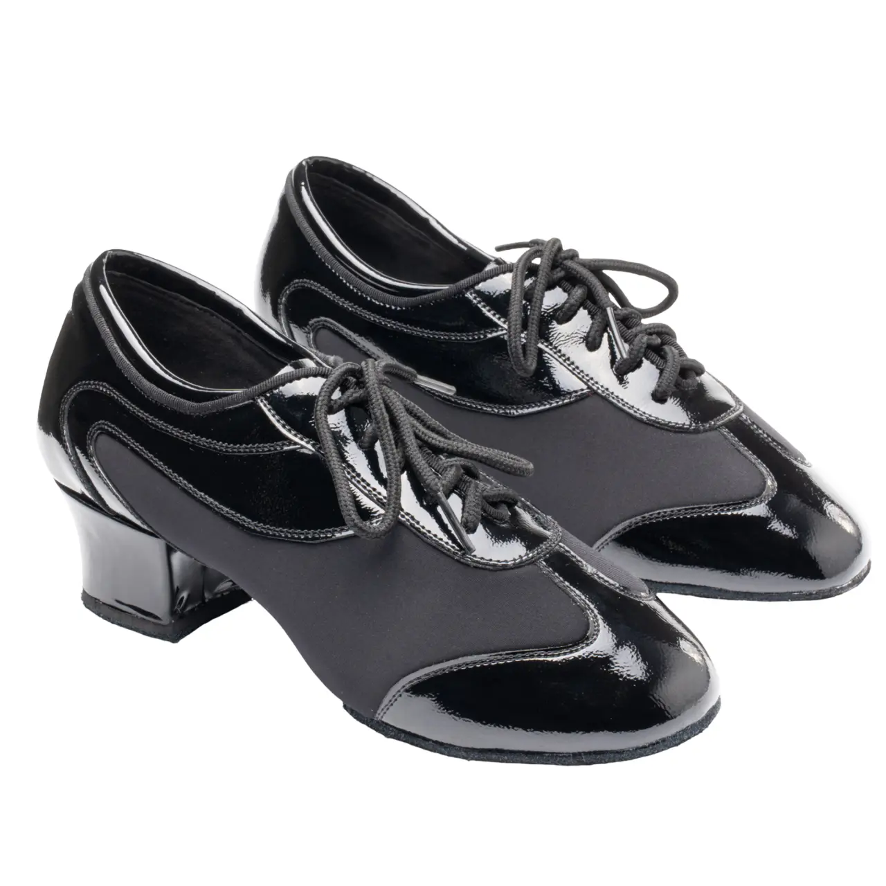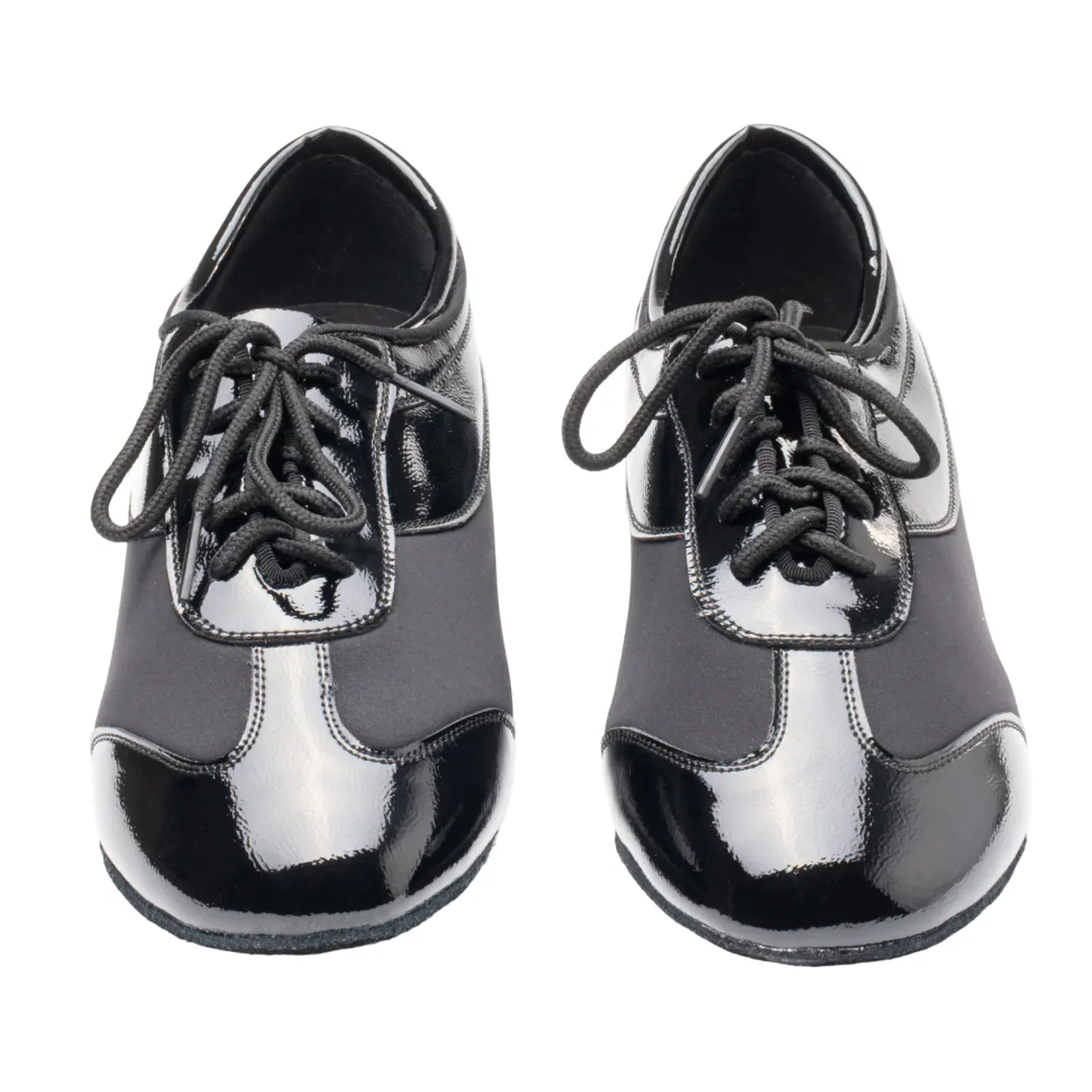 Das Obermaterial besteht aus einer Kombination aus Kunstleder und elastischem Neopren, das sich dem Fuß anpasst und den Tragekomfort beim Tanzen erhöht. Neopren sorgt zugleich für Atmungsaktivität und einen besseren Feuchtigkeitstransport, was Sie besonders bei längerem Tragen schätzen werden. Die Schuhspitze ist mit lackiertem Patentleder überzogen, das ein markantes Designelement bildet und den Schuhen Pfiff und Eleganz verleiht.