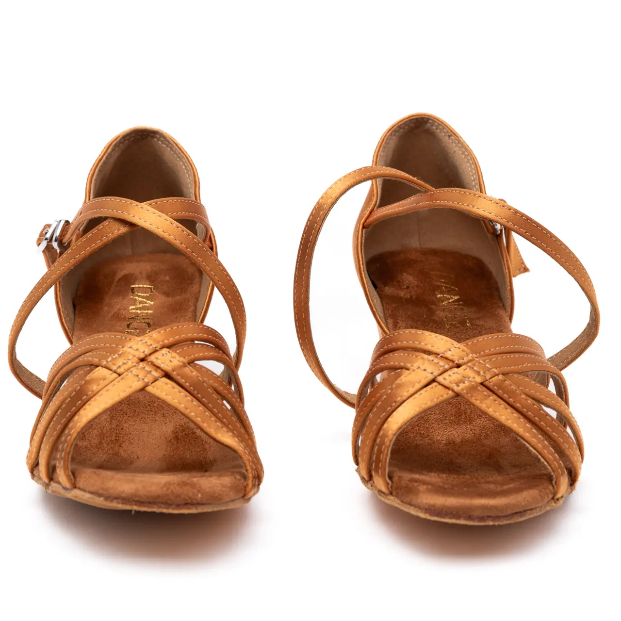 Lateinschuhe mit Riemchen gehören zu den Basicschnitten für Anfängerinnen im Gesellschaftstanz. Das Satin-Obermaterial und die flexible Lederlaufsohle sind mit einem 3,5 cm Absatz kombiniert. Ein Basic, der nie aus der Mode kommt. Geeignet für einen mittleren und schmalen Fuß