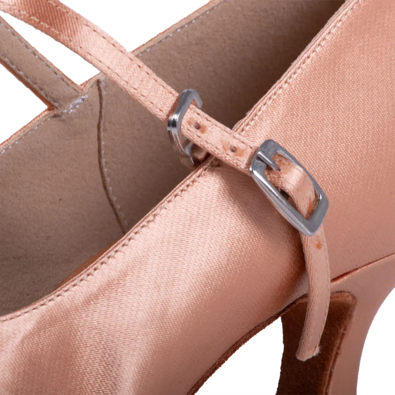 Die Tanzschuhe Diana sind hauptsächlich für Standardtänze bestimmt. Sie können sie auch als Brautschuhe oder Schuhe für eine gesellschaftliche Veranstaltung nutzen, sofern Sie einen geschlossenen Schuhtyp bevorzugen. Die Innensohle ist weich und bequem. Das Satin-Obermaterial des Schuhs hat im vorderen Bereich einen angenähten, gekreuzten Streifen aus demselben Material in Form einer Schleife. Die nachgiebige Sohle aus aufgerautem Leder ist flexibel und erleichtert die Arbeit des Fußes. Sie ist nur für den Innenbereich geeignet. Beim ersten Anprobieren empfehlen wir, dass der Schuh eher eng sitzt. Es darf natürlich nicht weh tun, aber durch das Training dehnt sich jeder Schuh etwas aus, wird weiter. Es ist wichtig, dass der Tanzschuh weiterhin fest am Fuß anliegt. Sie werden mit einer Schnellschließe geschlossen, durch einfaches Einhaken. Am Fuß sehen sie sehr elegant aus.