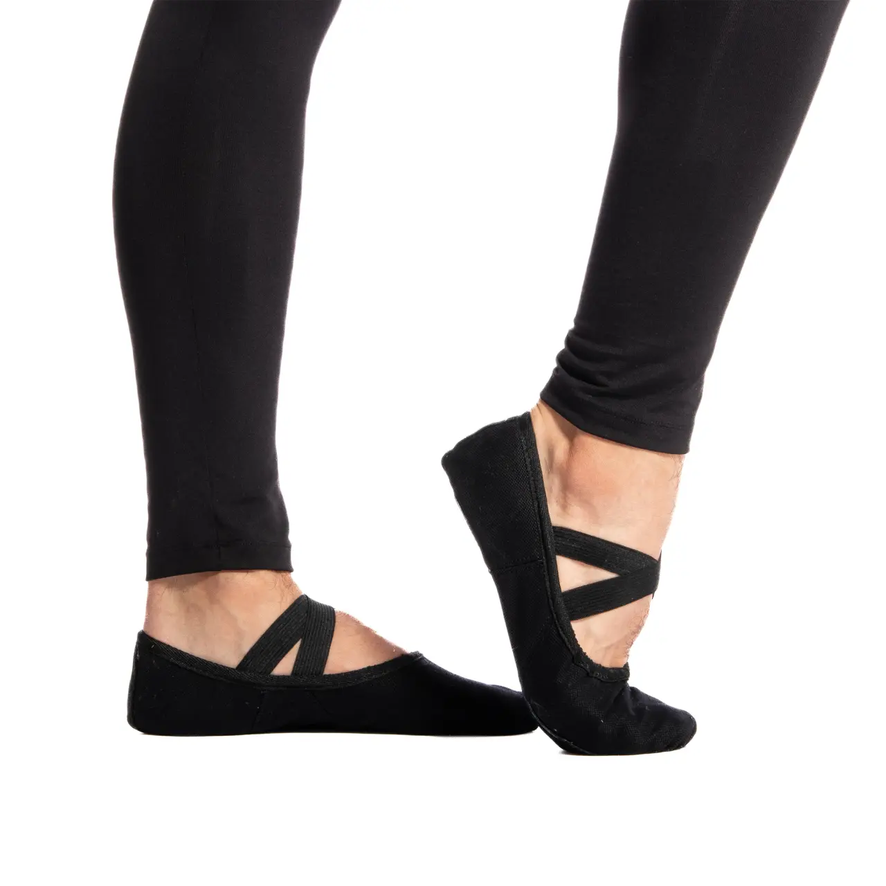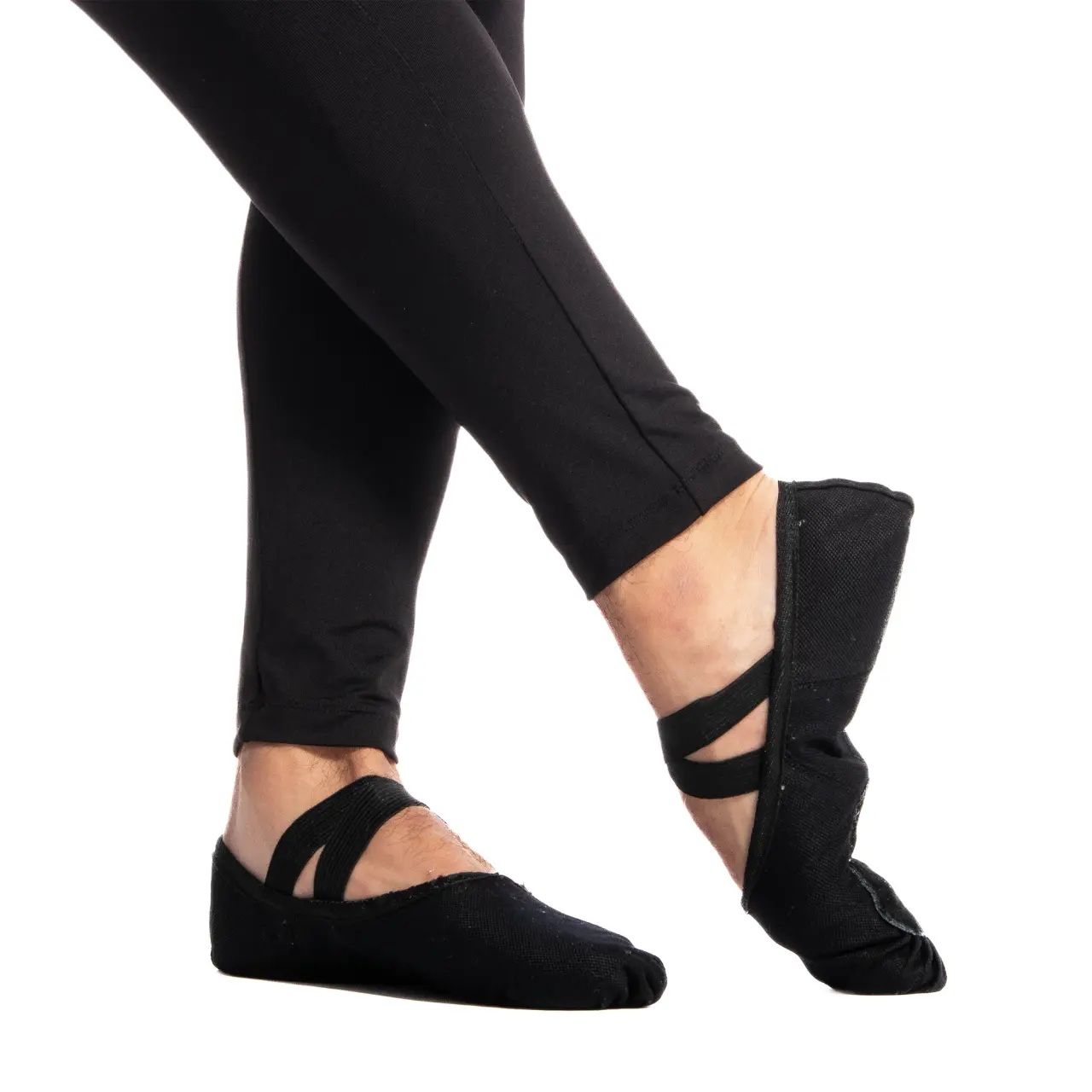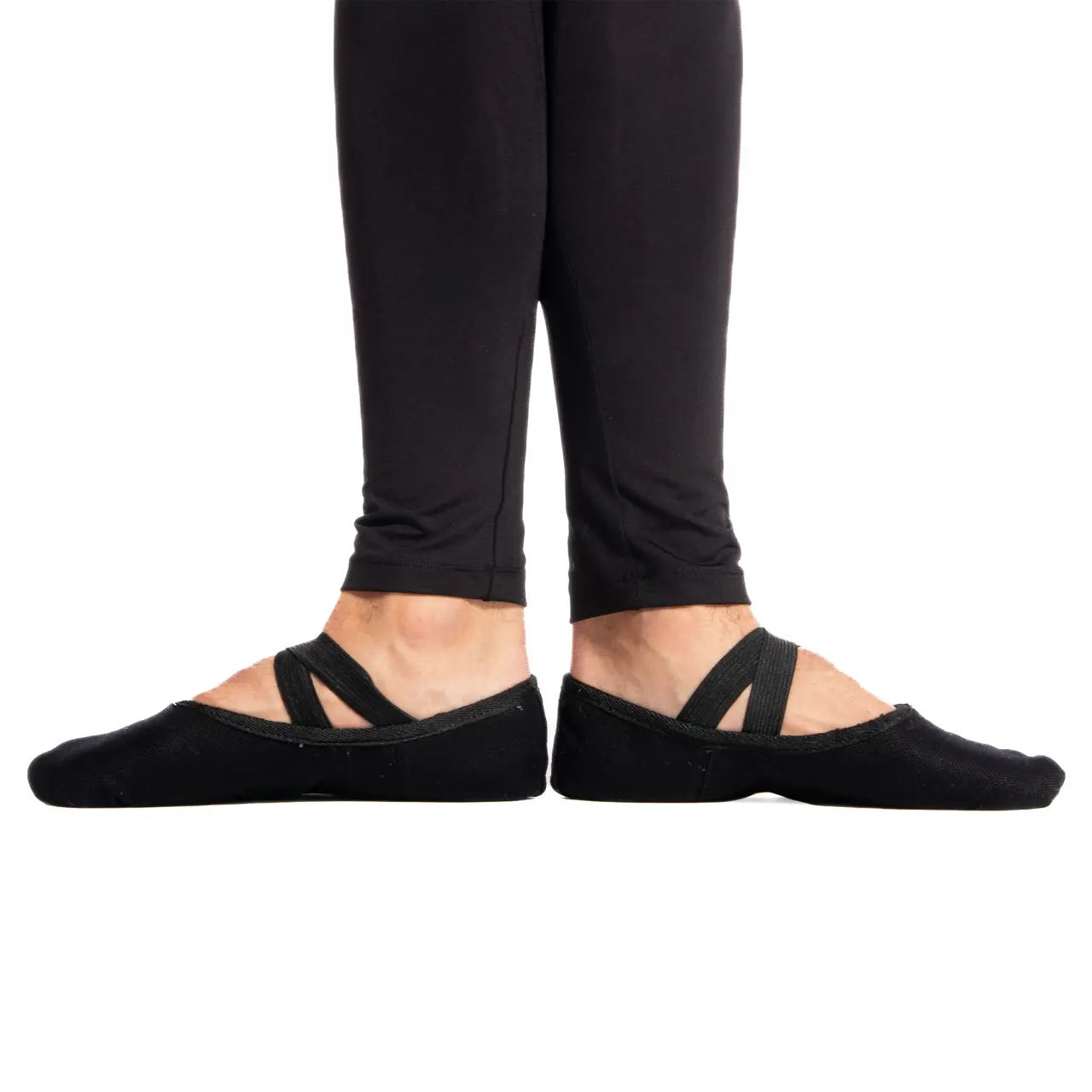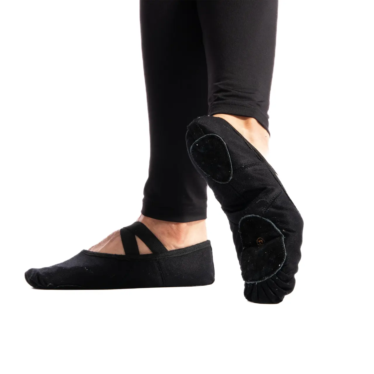 Grundlegende Schläppchen für den Tanzunterricht, hergestellt aus stärkerem Canvas. Sie halten nicht nur länger, sondern nach ein paar Trainings passt sich das Material schön dem Fuß an. Über den Spann verlaufen 2 bereits angenähte elastische Bänder, die die Schläppchen am Fuß halten. Außerdem können Sie die Schläppchen dank der elastischen Schnürung im Saum ganz einfach enger ziehen und genau nach Bedarf an Ihren Fuß anpassen. Binden Sie ruhig einen festen Knoten, und den restlichen überschüssigen Gummizug können Sie abschneiden. Das Modell ist für mittelbreite bis breite Fußtypen gedacht. Die geteilte Ledersohle gehört zu den am häufigsten verwendeten.