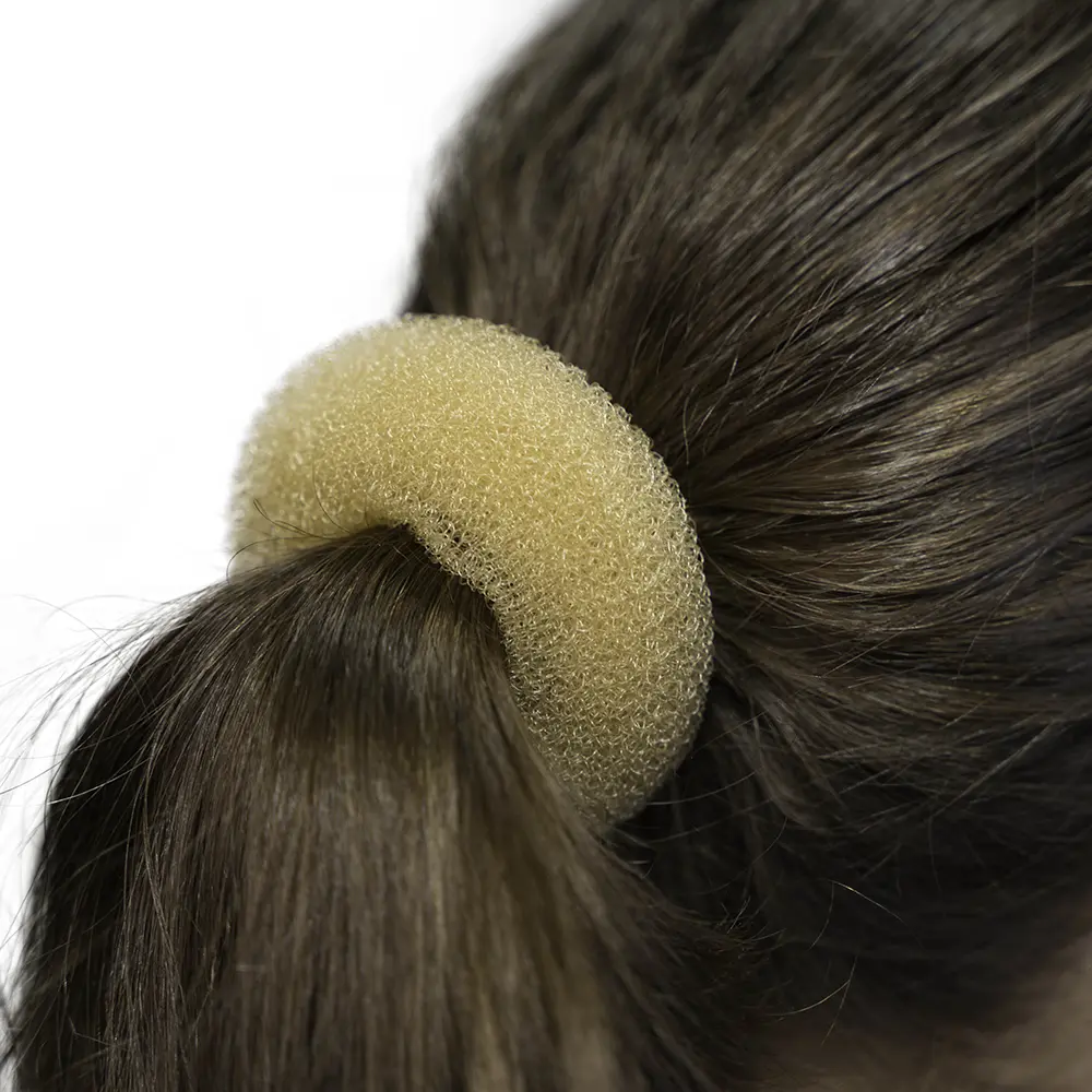 Hilfsmittel zum Formen einer perfekten Frisur, Hair-Donut in Größe S. Es ist wiederverwendbar. In der Packung ist ein Stück enthalten. Es kann von Hand mit einem milden Reinigungsmittel gewaschen werden, anschließend lässt man es frei trocknen. Material – Nylon. Sein Durchmesser beträgt etwa 5.5 cm.