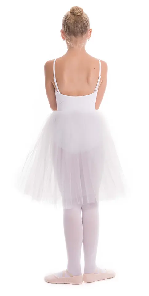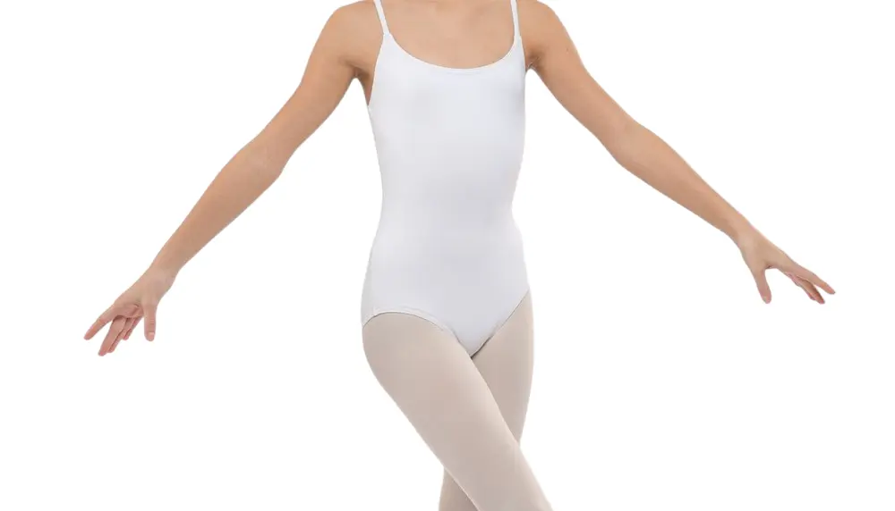 Klassisches Balletttrikot mit Spaghettiträgern, dünnen Trägern. Vorne hat das Trikot einen feinen, bogenförmigen Ausschnitt, ebenso am Rücken. Vorteilhaft sind die verstellbaren Träger. Das Trikot ist vorne vollständig gefüttert. Es ist angenehm und elastisch. Material: 92% Nylon, 8% Spandex.