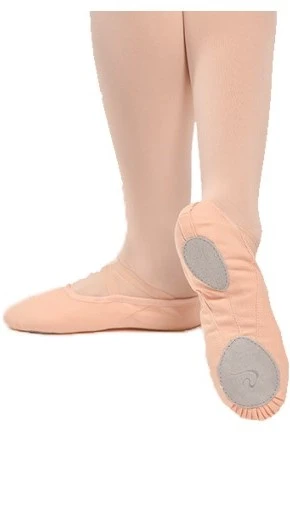 Schläppchen für Anfängerinnen. Das Basismodell aus leicht elastischem Material hat keine Kordel am Rand. Die Spitzen lassen sich dank der geteilten Ledersohle leichter durchstrecken.