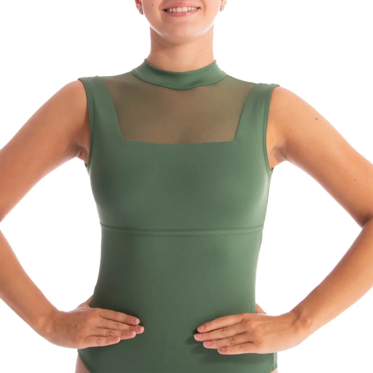 Das Tanztrikot Olga ist die Verkörperung von Raffinesse. Sein Design mit Stehkragen und die beeindruckenden Details aus elastischem Mesh an Brust und Rücken verleihen diesem Stück einen einzigartigen und modernen Look.