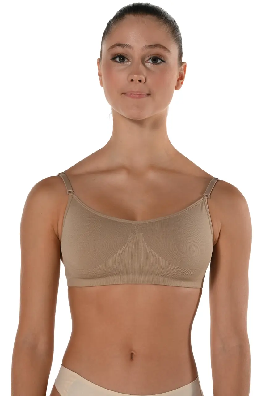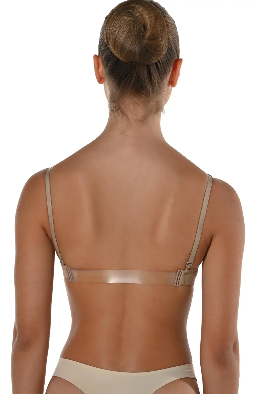 Unterwäsche unter Tanzbekleidung. Der BH ist im vorderen Bereich gefüttert, hat zwei Schichten. Die Cups sind nicht gepolstert. Er ist nahtlos, elastisch. Am Rücken befindet sich ein transparenter, abnehmbarer Streifen. Die Träger sind in der Verpackung sowohl transparent als auch elastisch, hautfarben. Sie können je nach Bedarf wählen. Sie sind verstellbar. Das Material besteht aus 95% Nylon und 5% Spandex.