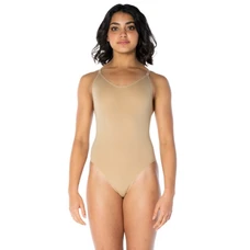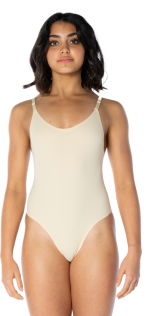 Das Basic-Untertrikot eignet sich unter Tanzkostümen. Die Spaghettiträger sind abnehmbar. Sie können sie in 4 Positionen befestigen. Die Packung enthält ein Paar hautfarbene Träger und ein Paar transparente. Die Nähte des Untertrikots sind unsichtbar. Das Material ist glatt und angenehm. Elastische Mikrofaser besteht zu 85% aus Nylon und zu 15% aus Spandex.
