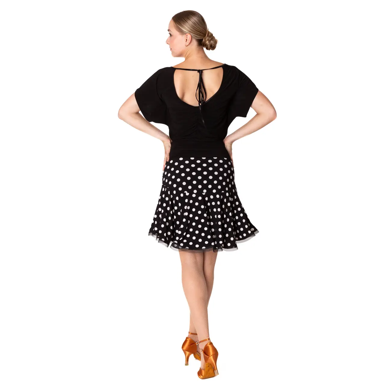 Das Top mit Raglanärmeln hat schöne, klare Linien. Am Rücken sorgt ein leicht runder Ausschnitt, der mit einer glänzenden elastischen Kordel zusammengezogen ist, für das gewisse Etwas. Das Top ist in der Taille mit einem breiteren Saumabschluss versehen. Das leichte, fließende Polyestermaterial bitte von Hand in kaltem Wasser waschen und frei trocknen lassen.