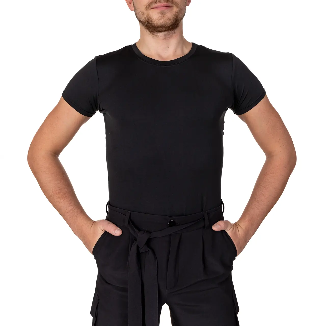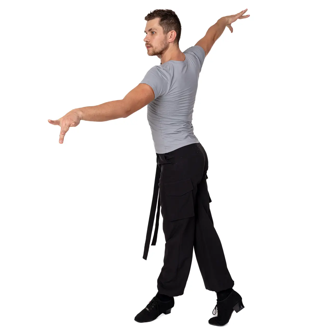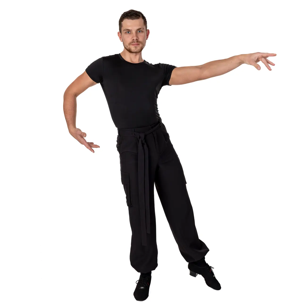 Wir präsentieren Ihnen Cargo-Hosen für Herren. Ein unverzichtbarer Bestandteil der Kleidung eines Tänzers, der es Ihnen ermöglicht, mit maximalem Komfort und Stil zu trainieren. Sie haben einen sportlich-eleganten Schnitt mit Seitentaschen, einen dekorativen, abnehmbaren Gürtel aus demselben Stoff wie die Hose. An den Knöcheln ist ein flaches Gummiband eingenäht. Das leichte und atmungsaktive Material sorgt für eine optimale Luftzirkulation. Der Stoff ist leicht elastisch. Waschen Sie in kaltem Wasser mit einem milden Waschmittel im Schonwaschgang und lassen Sie es frei trocknen. Material: 100% Polyester.