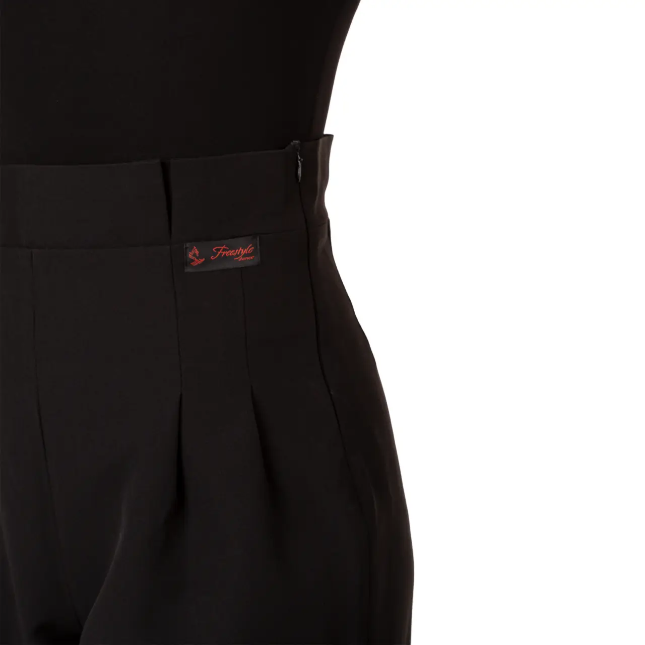Hose mit erhöhter Taille, lässt die Beine optisch länger wirken. Im vorderen Bereich befinden sich zwei Verschlüsse auf jeder Seite. Unten verläuft sie in einem geraden Schnitt weiter. Eines der eleganten Modelle. Material – Polyester. Handwäsche mit mildem Waschmittel, zum Trocknen locker aufhängen.